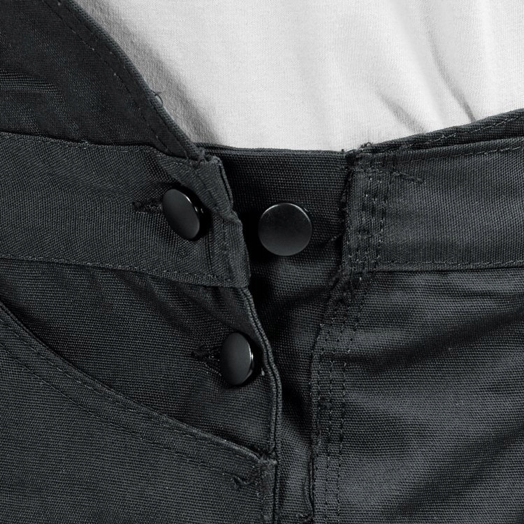 - Пояс с вшитой резинкой, петлей для ключей и по бокам регулировка ширины талии на кнопках
