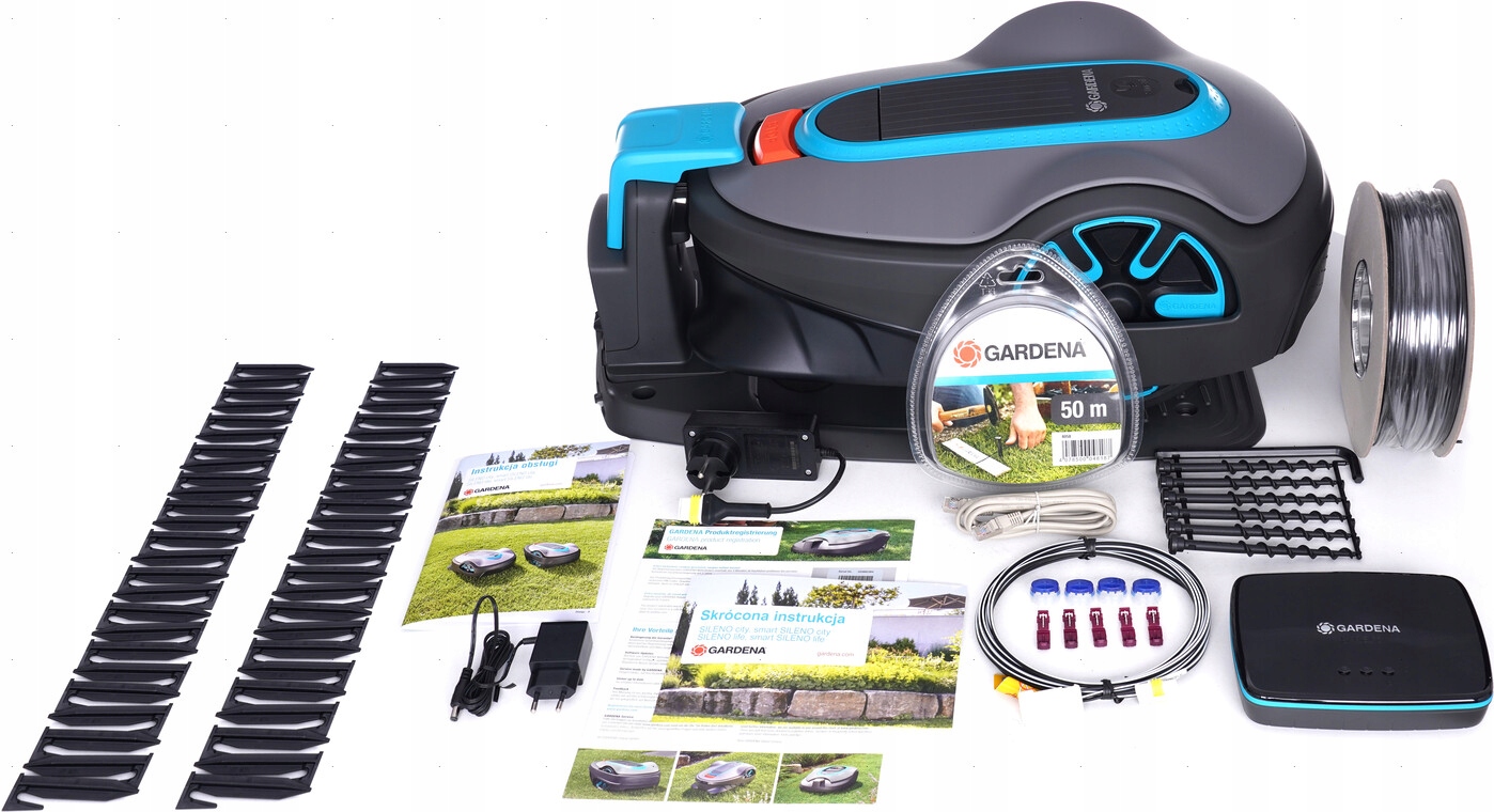 - дополнительное оборудование: более длинный ограничительный провод / гараж / штыри (монтажные штифты) / крышка / датчик / контроллер полива / настенное крепление