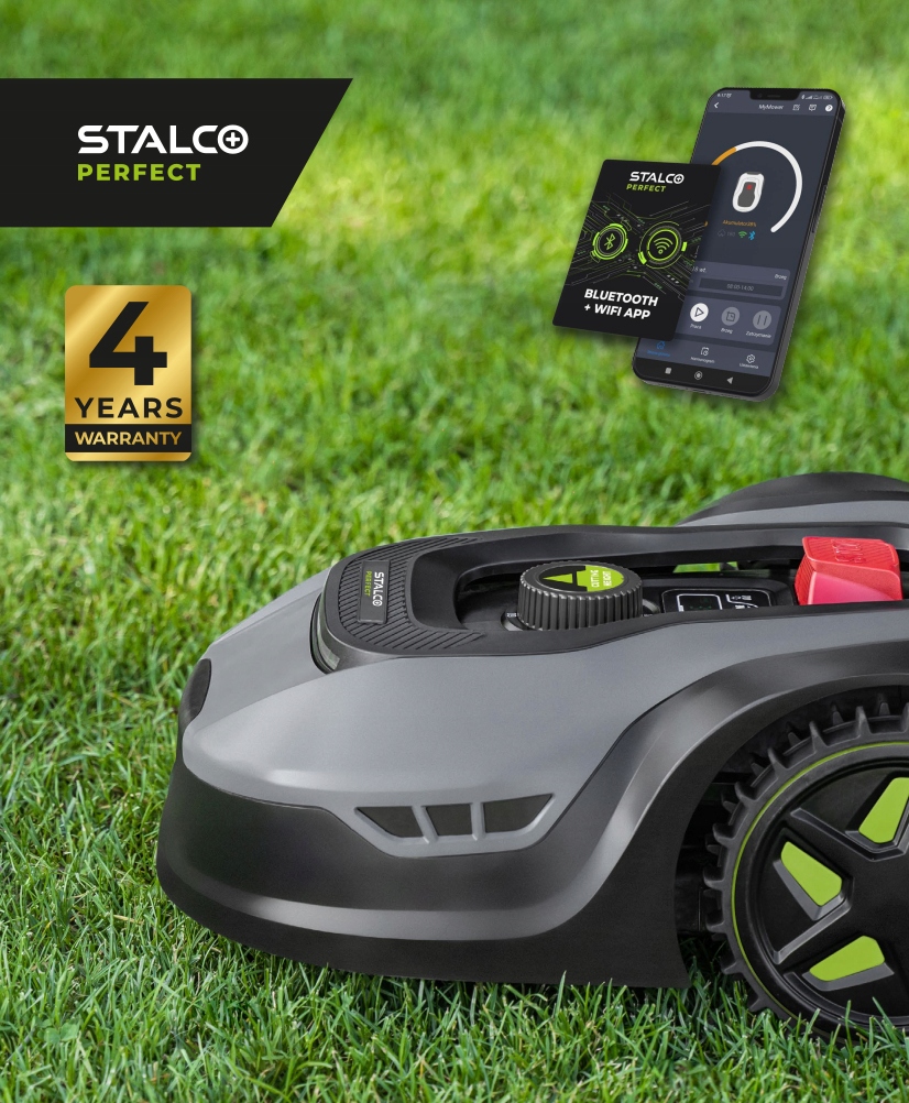 Роботы-косилки Stalco Perfect оснащены встроенным дисплеем и кнопками для удобного управления. Через мобильное приложение вы можете получить более расширенные настройки и управлять роботом-косилкой удаленно через Wi-Fi или Bluetooth. Приложение доступно для загрузки в магазинах приложений iOS или Android. С его помощью можно составить индивидуальный план кошения на конкретный день, включить или выключить робот-косилку, проверить уровень заряда аккумулятора или текущее рабочее состояние машины. Кроме того, с помощью приложения мы можем настроить до 4 зон кошения и даже определить, через какое время после дождя робот-косил должен вернуться в работу.