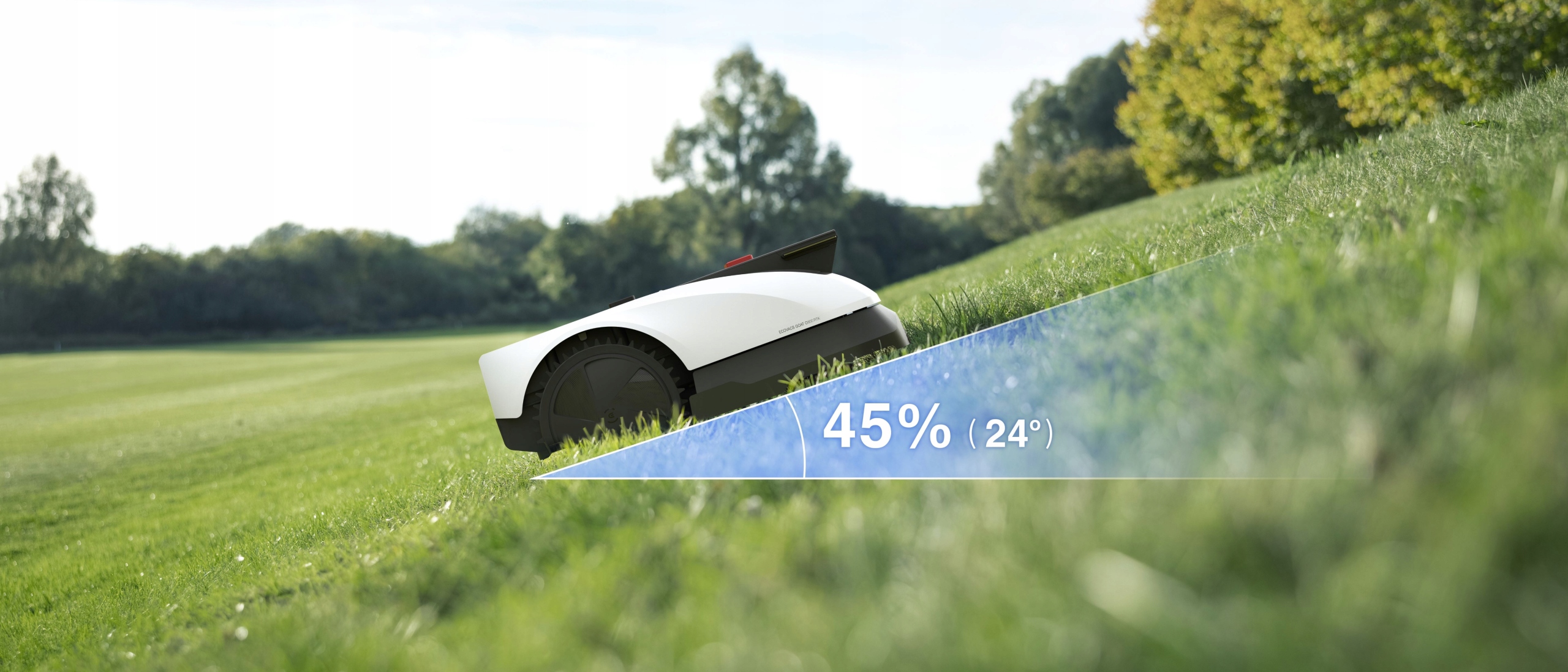 Новая серия роботов GOAT O создана для труднопроходимой местности, с возможностью преодоления уклонов до 45%. Эта впечатляющая способность позволяет роботу легко перемещаться по холмистым или неровным участкам газона, обеспечивая стабильную производительность стрижки на самых разных ландшафтах.