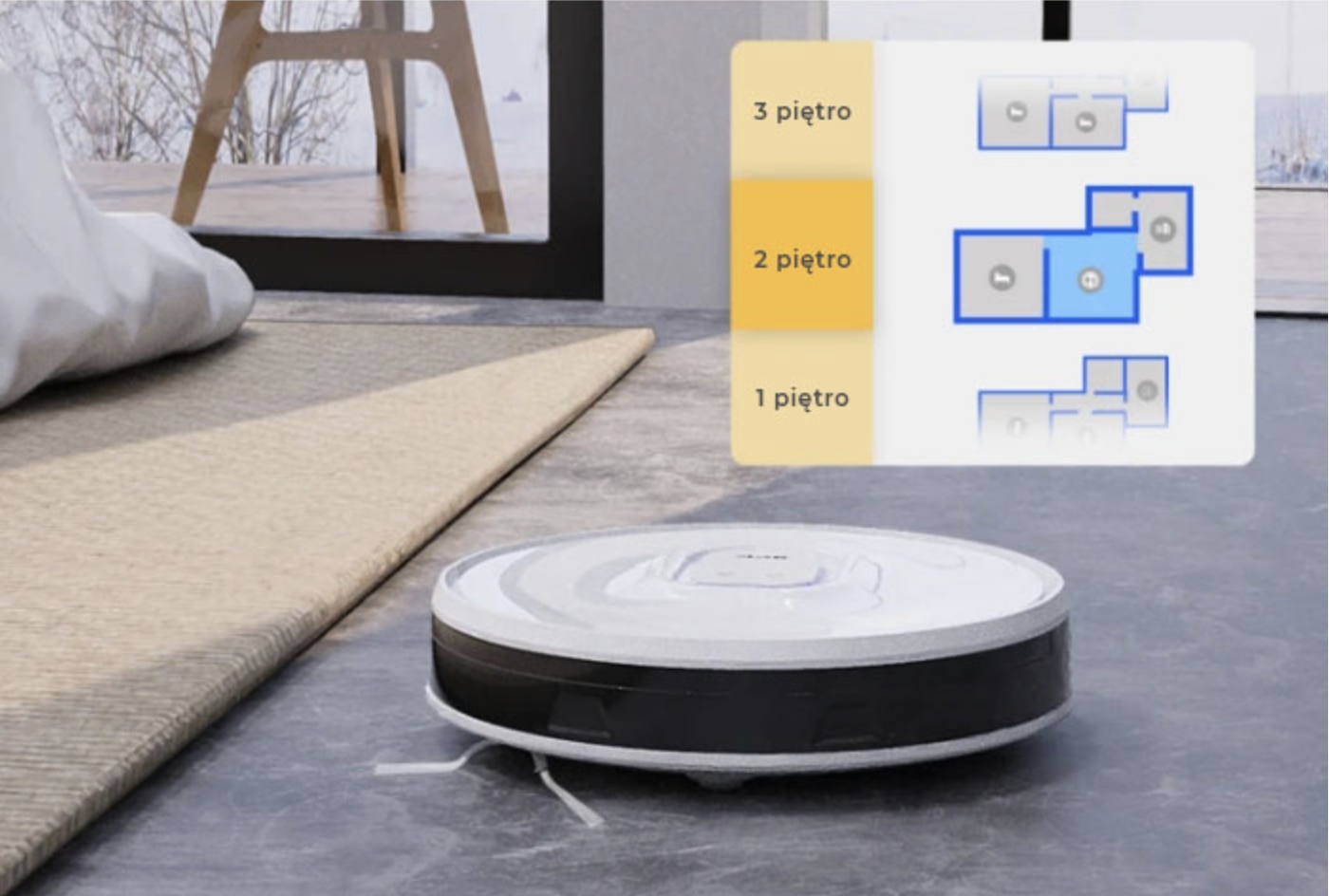 С помощью приложения вы можете создать до 3-х разных карт для вашего робота! Это позволяет ему работать на 3 разных этажах! Нет – к сожалению, наш робот (пока) не может подниматься по лестнице