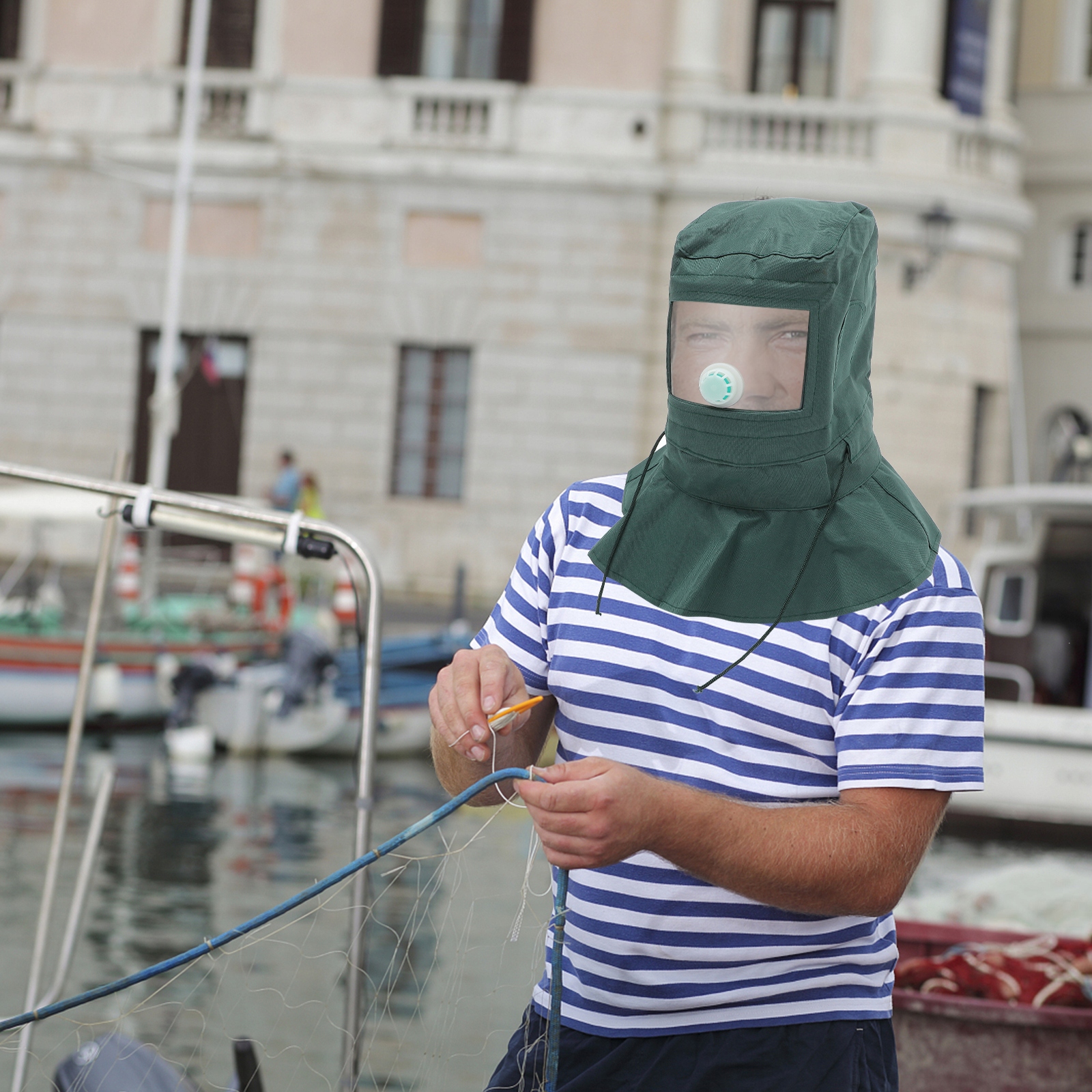 Робота на відкритому повітрі. Маска. Піскоструминна обробка обличчя. Деревообробка