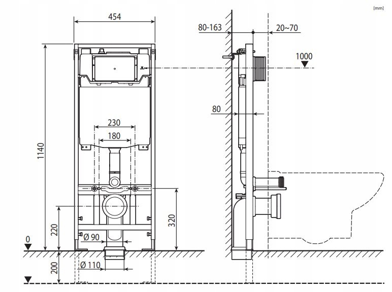 ✔️ Расстояние установки чаши [мм]: 180, 230