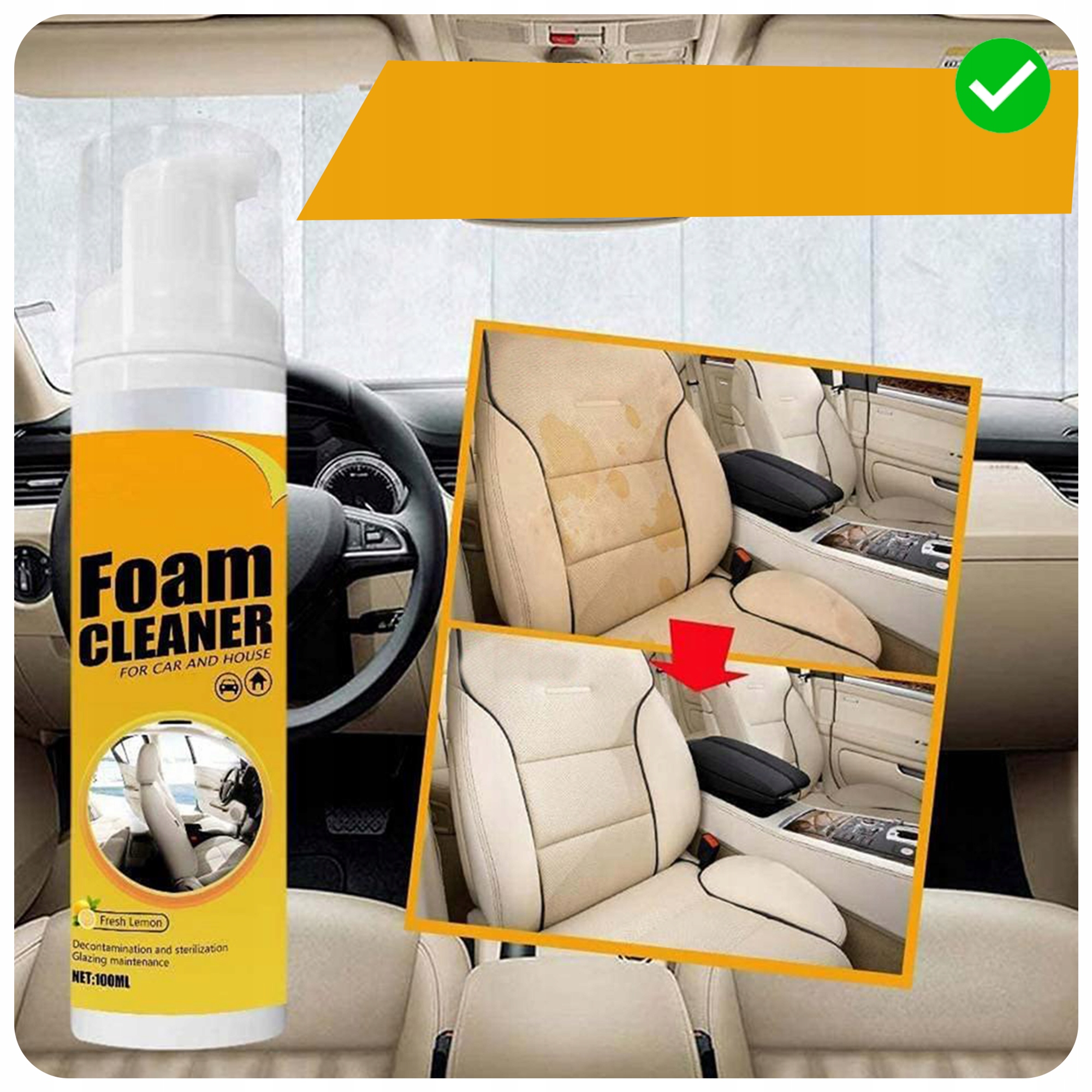✅ Уникальная пена также придает свежий аромат лимона, удаляя 100% загрязнений с поверхности.