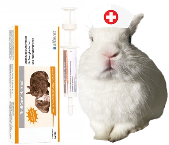 RodiCare Hairball 12 мл может оказаться эффективным в удалении отложений волос и безоаров из пищеварительного тракта. Это означает не что иное, как помощь в избавлении от лишней шерсти из пищеварительной системы нашего кролика. Стоит приобрести этот товар, если ваш кролик часто забивается, имеет длинную шерсть или находится в периоде чрезмерной линьки. От производителя: