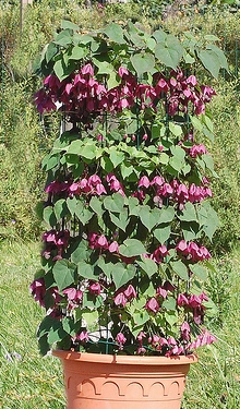 Одние экзотические вьющиеся растения с цепкими черешками листьев и эффектными пурпурно-красными цветками. Цветет с июля по октябрь. Высевают по 2 семени в феврале-марте в горшочки диаметром 10-12 см.