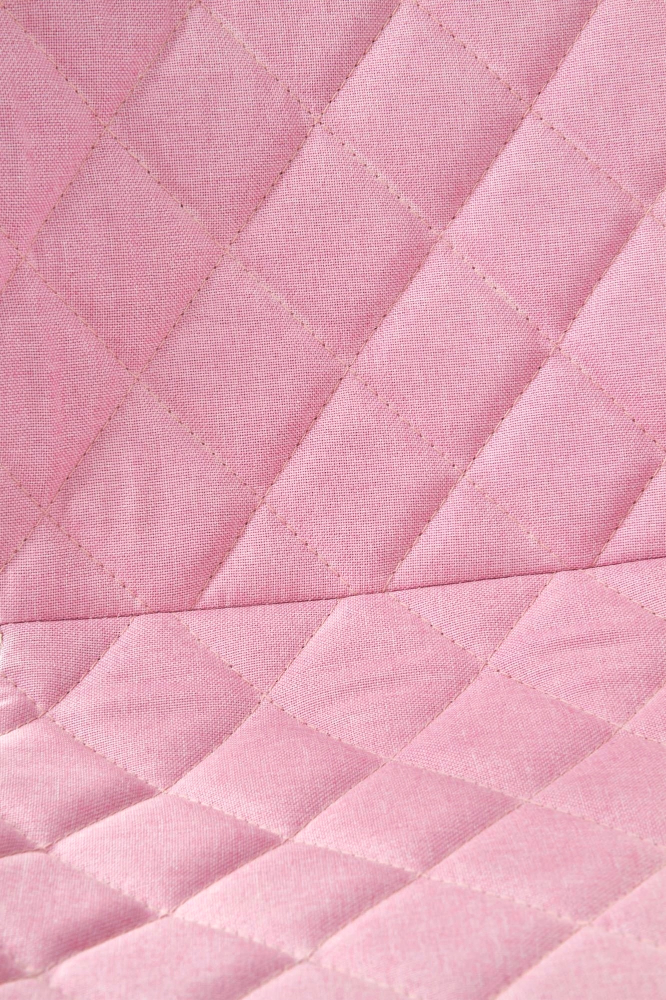- стеганый фронт, обитанный с розовой тканью. Задняя обивка с белой экологической кожей