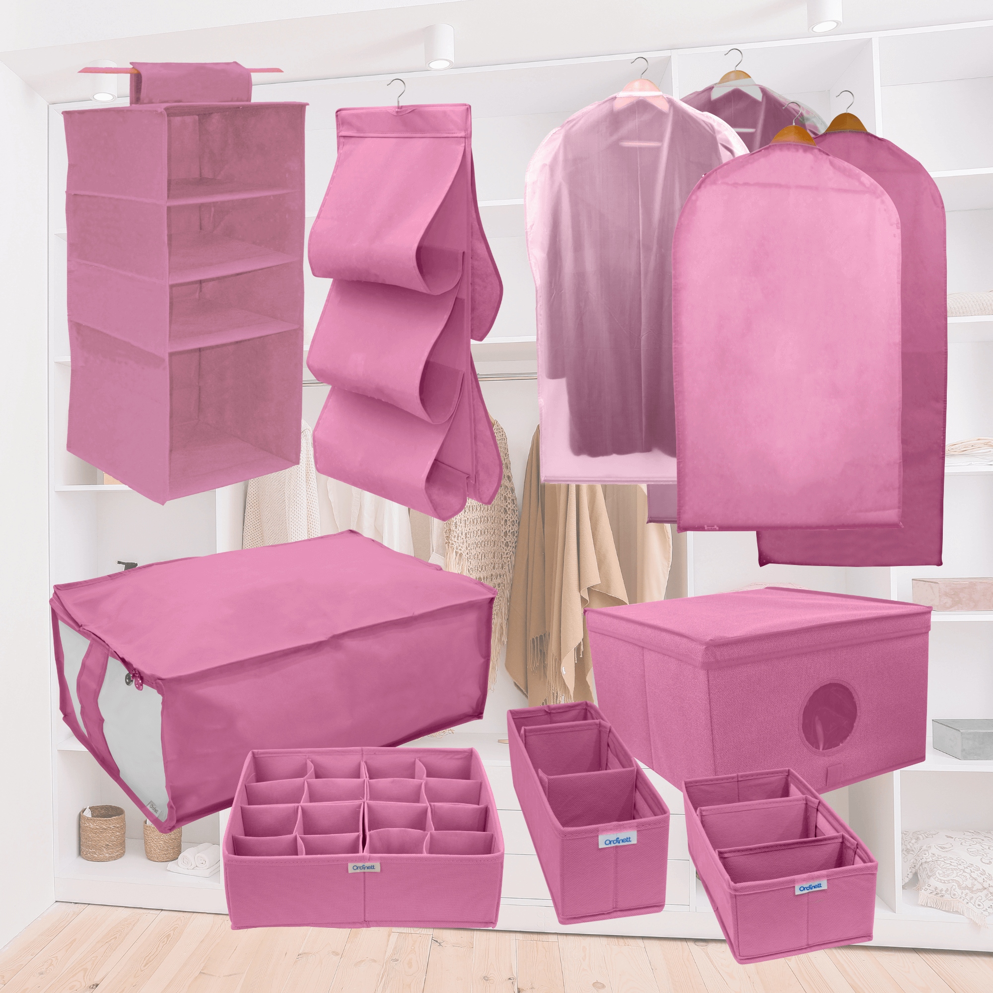 Органайзер в ящике • Контейнер для шкафа • Розовый • Складной • Пылеотталкивающий материал • с возможностью просмотра • на молнии