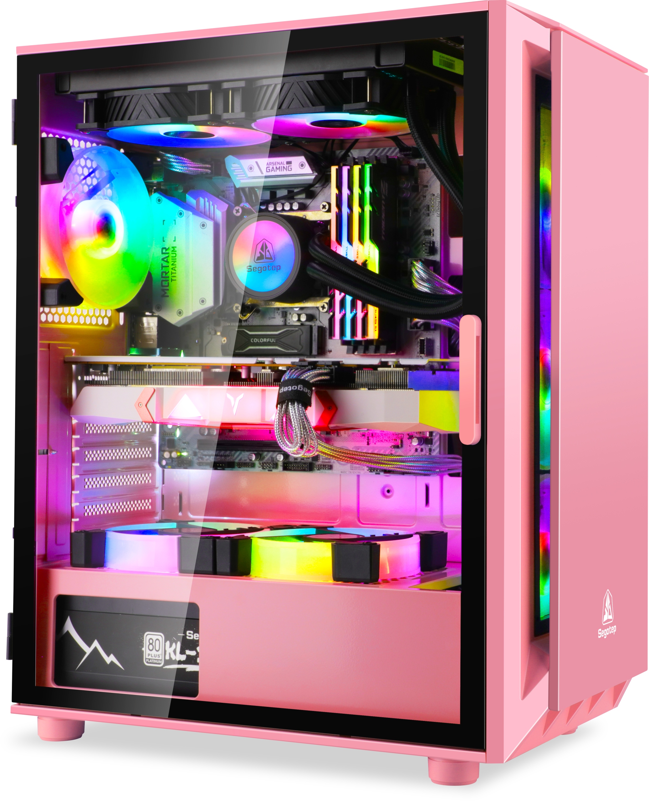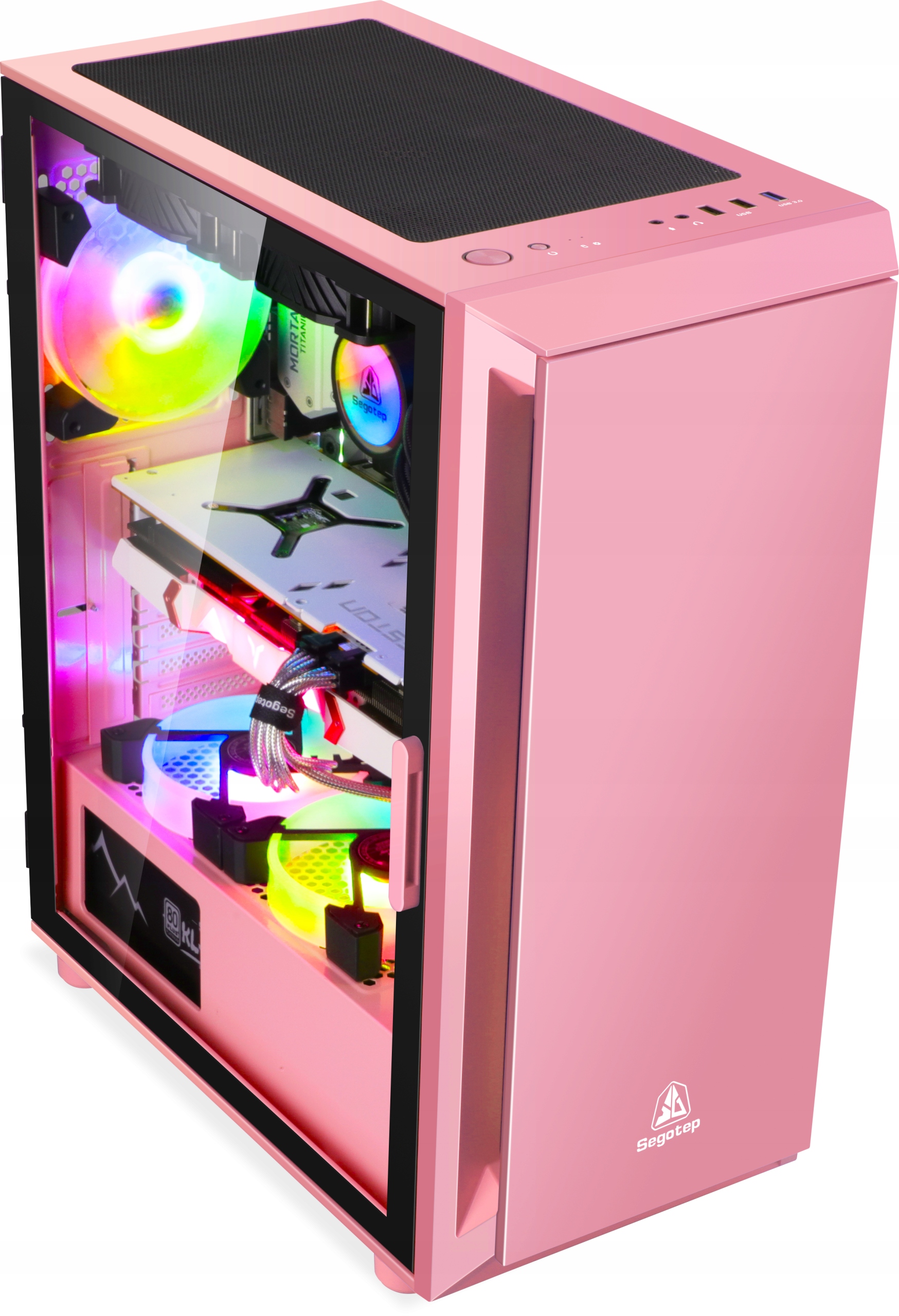 РОЗОВЫЙ КОРПУС ATX USB 3.0 СТЕКЛЯННАЯ ДВЕРЬ ИГРОВОЙ ПОДВАЛ SEGOTEP GANK 5 РОЗОВЫЙ ИЗ ТОЛСТОГО ЛИСТОВОГО МЕТАЛЛА 1x ВЕНТИЛЯТОР ARGB БЕСПЛАТНО!