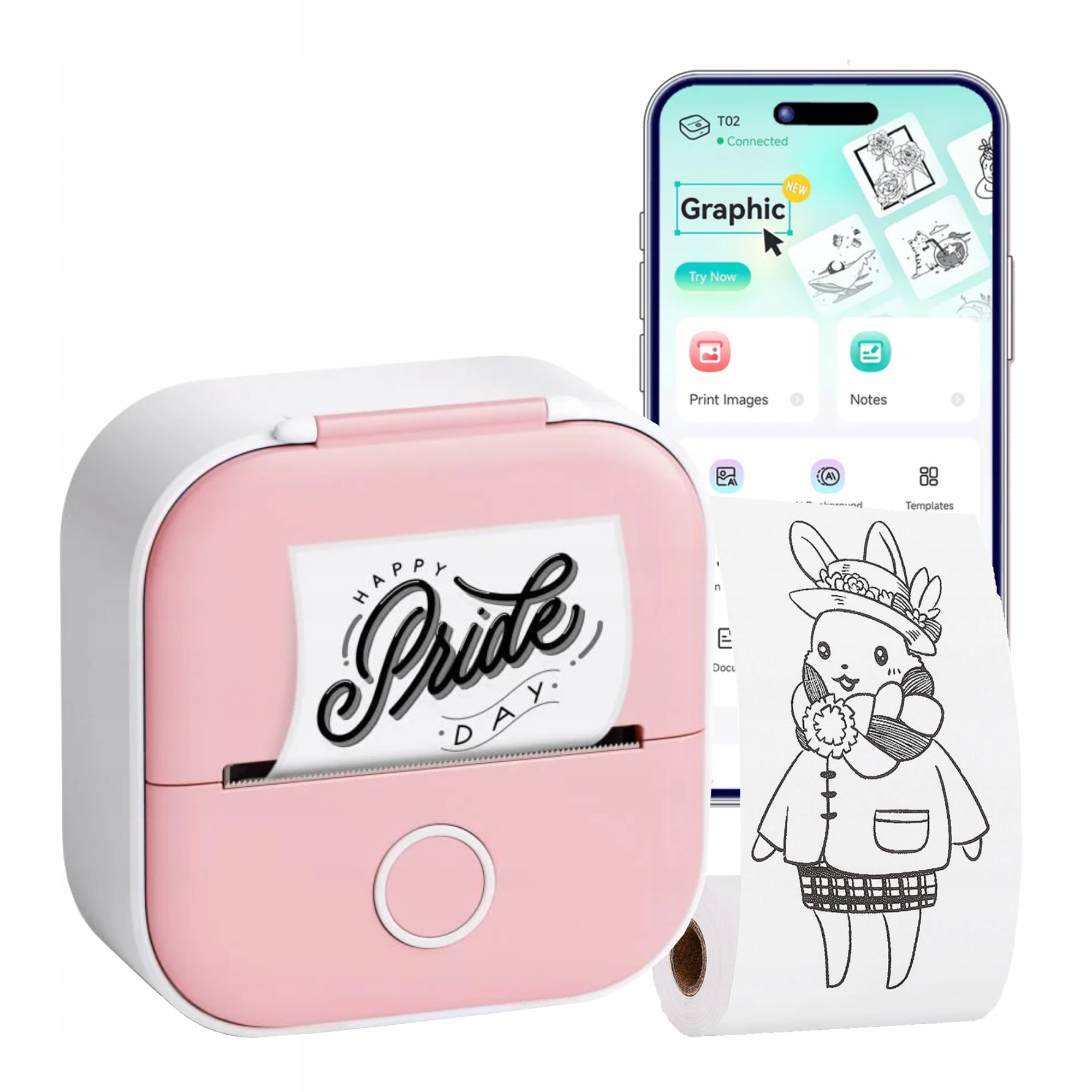 Розовый мини-термопринтер Phomemo T02 для наклеек, заметок, этикеток для детей