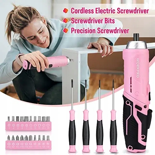 • 【Отличная идея для подарка】 Розовый набор инструментов WORKPRO — идеальный подарок для любителей и мастеров своими руками, мастеров, детей и женщин. Подходит для всех домашних декораций, таких как DIY с детьми, сборка мебели, украшение. Этот практичный набор инструментов значительно упрощает повседневный ремонт и обслуживание!