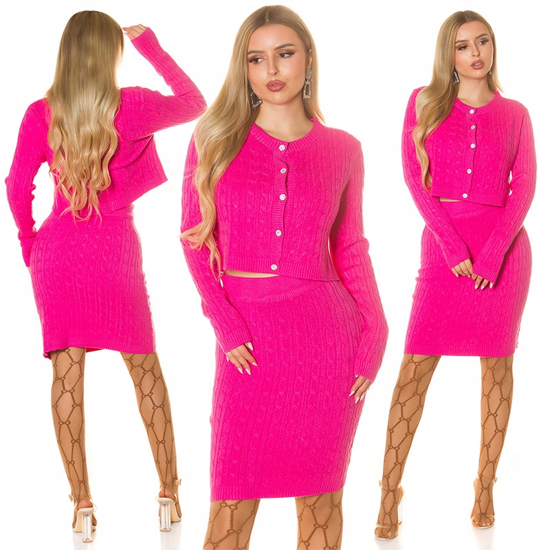 РОЗОВЫЙ ТРИКОТАЖНЫЙ ЖЕНСКИЙ КОМПЛЕКТ ЮБКА-СВИТЕР ЭЛЕГАНТНЫЙ ЖЕНСТВЕННЫЙ КОМПЛЕКТ
