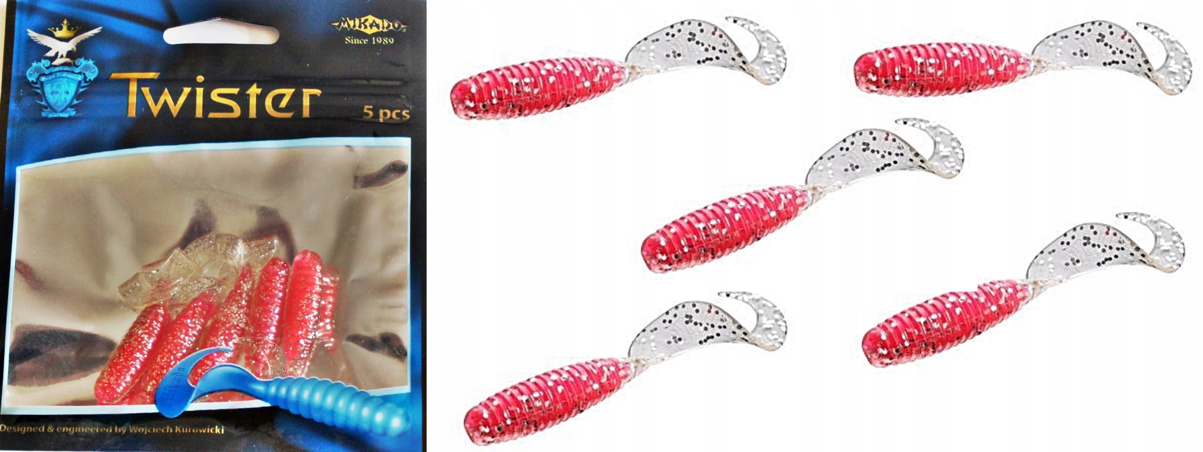 ТВИСТЕРЫ МИКАДО ИЗ ЧРЕЗВЫЧАЙНО ПРОЧНОГО МАТЕРИАЛА СО СПЕЦИАЛЬНО НАГРУЖЕННЫМ, ГОРФИРОВАННЫМ КОРПУСОМ И УДЛИНЕННОЙ ХВОСТОВОЙ ПОВЕРХНОСТЬЮ. НАПРЯЖЕНИЯ, ВОЗНИКАЮЩИЕ МЕЖДУ ПЕРЕГРУЖЕННЫМ КОРПУСОМ И ОЧЕНЬ БОЛЬШИМ ХВОСТОМ, ВЫЗЫВАЮТ ГЕНЕРАЦИЮ ЧРЕЗВЫЧАЙНО СИЛЬНОЙ ГИДРОАКУСТИЧЕСКОЙ ВОЛНЫ, ПРОИЗВОДИМОЙ ВИБРАЦИЯМИ ХВОСТА. ЭТА ВОЛНА НАХОДИТСЯ НА КРОМКЕ ВОДЫ, ТЕЧАЮЩЕЙ В ГЛУБОКИЕ ПОПЕРЕЧНЫЕ ВЫРЕЗЫ ТЕЛА.
