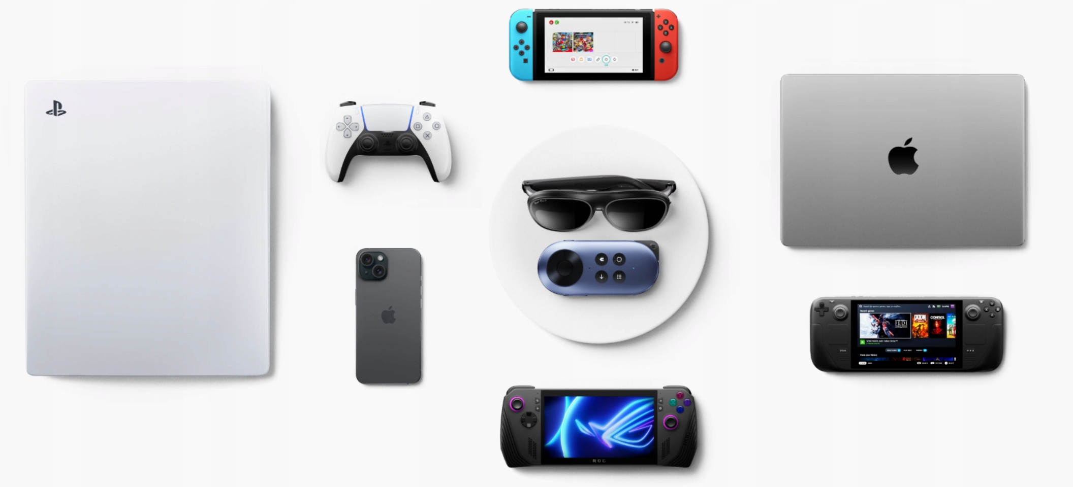 Огромный виртуальный экран и совместимость с большинством консолей (Switch, Steam Deck, PS4/5, Xbox Series X/S) делают каждую игру еще более захватывающей.