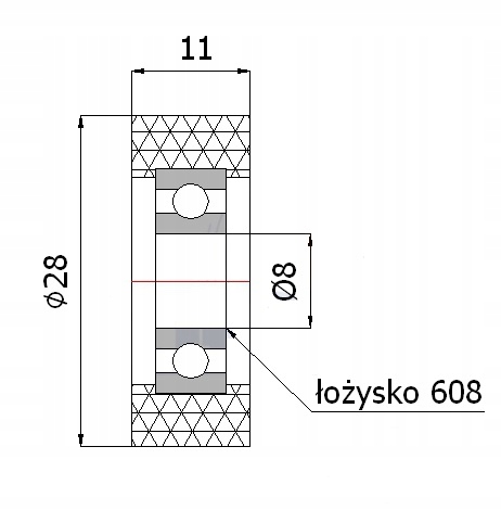 РОЛИК fi 28мм НАТИСК ПОЛІУРЕТАНОВИЙ 11мм