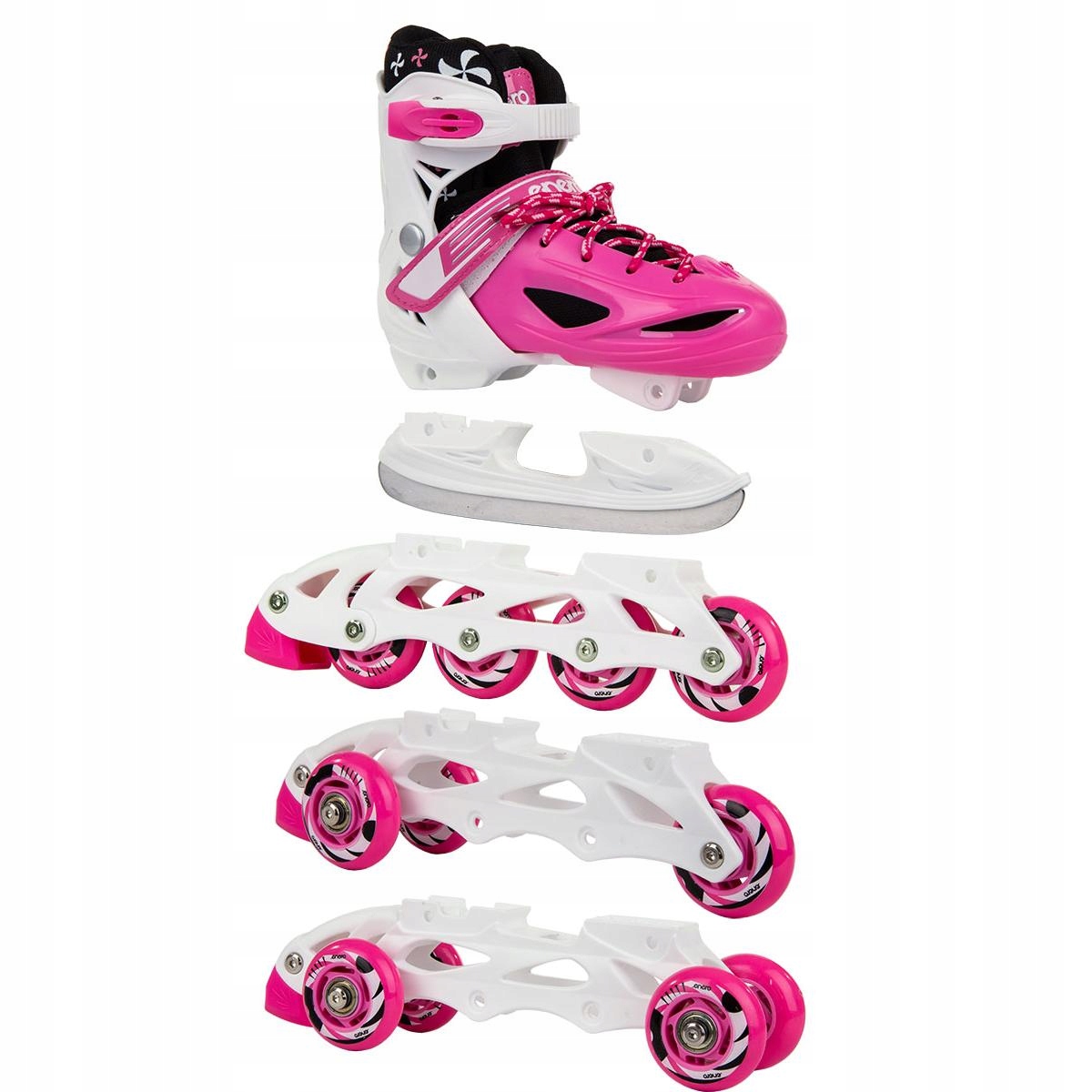 Кататься на роликовых коньках, коньках, роликовых коньках или 3 SKATE можно отличное решение для детей, которые любят активно проводить время. Наш продукт идеально подходит для этой цели. Использование системы 4 в 1 позволяет использовать технику круглый год, а также в течение нескольких сезонов или братьями и сестрами за счет возможности регулировки размера.