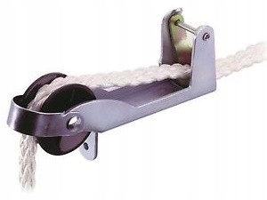 Анкерный ролик из оцинкованной стали. Имеет фиксатор для швартовного троса максимальной толщиной 12 мм.