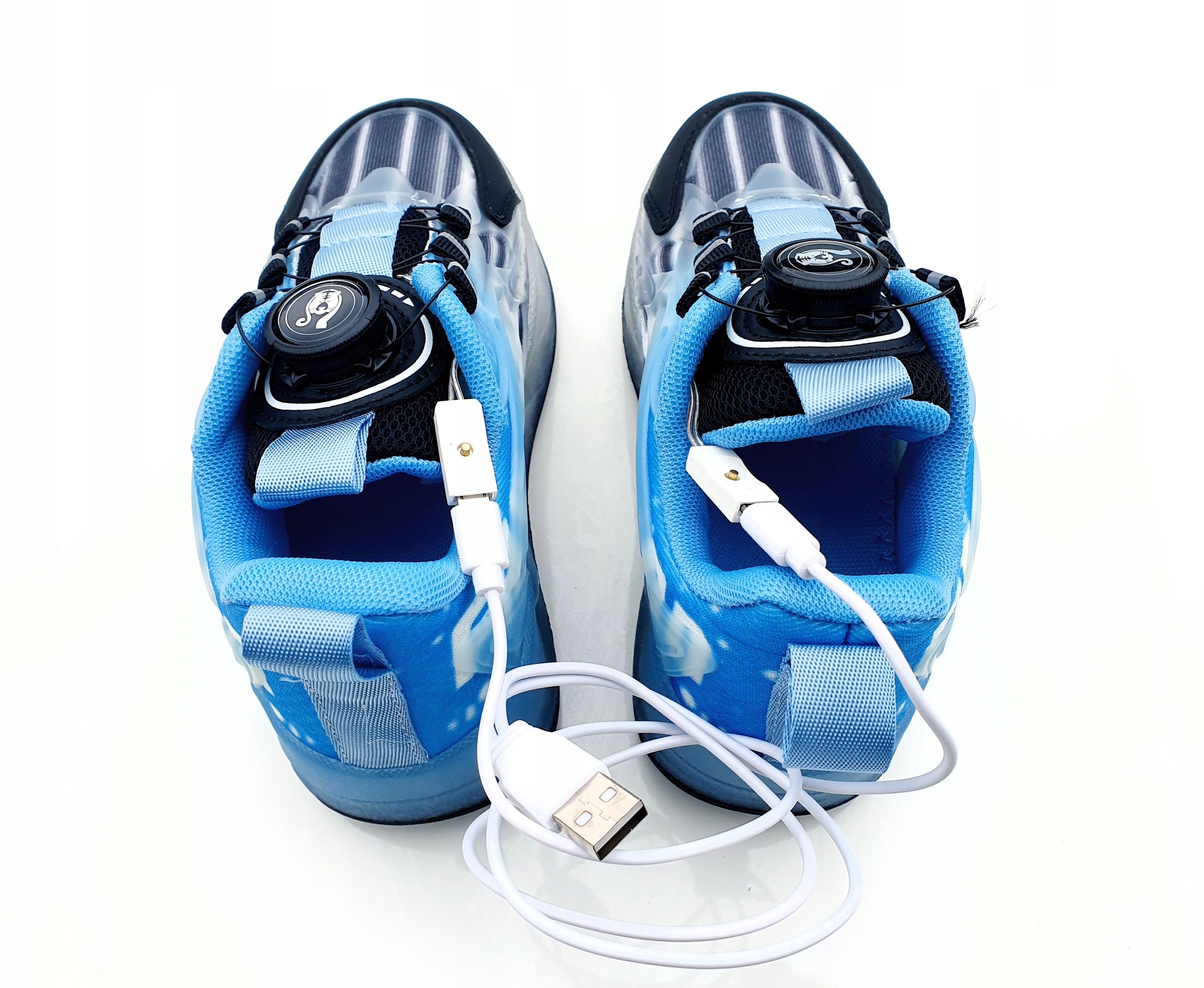 Светодиоды в кроссовках заряжаются с помощью USB-кабеля, входящего в комплект.