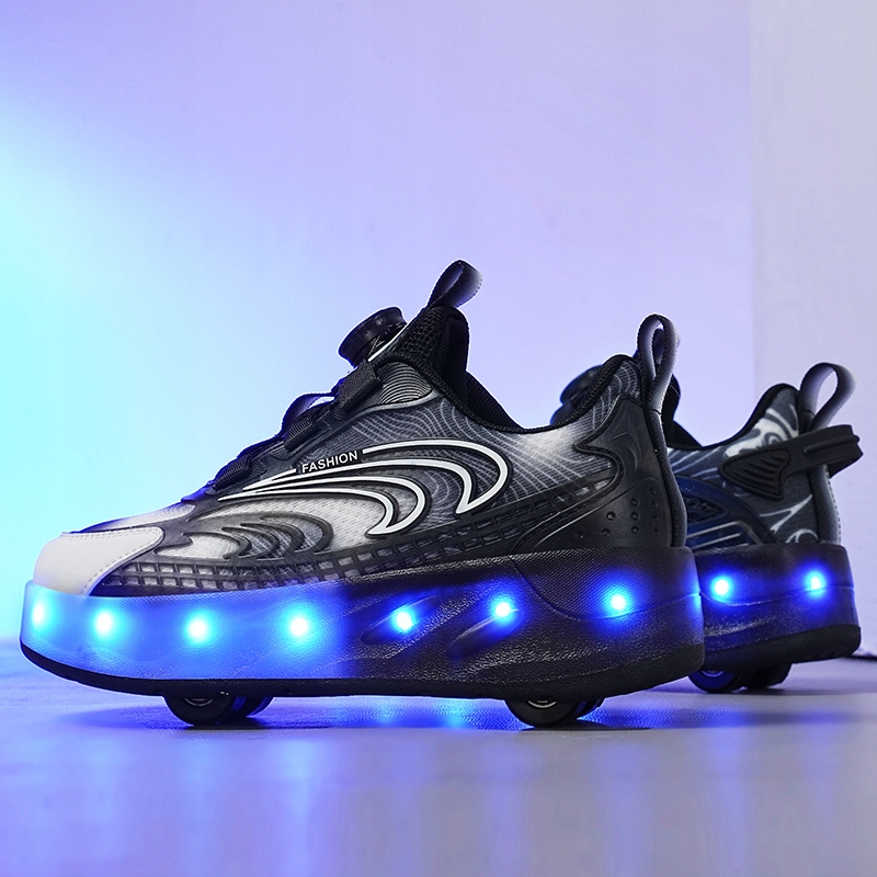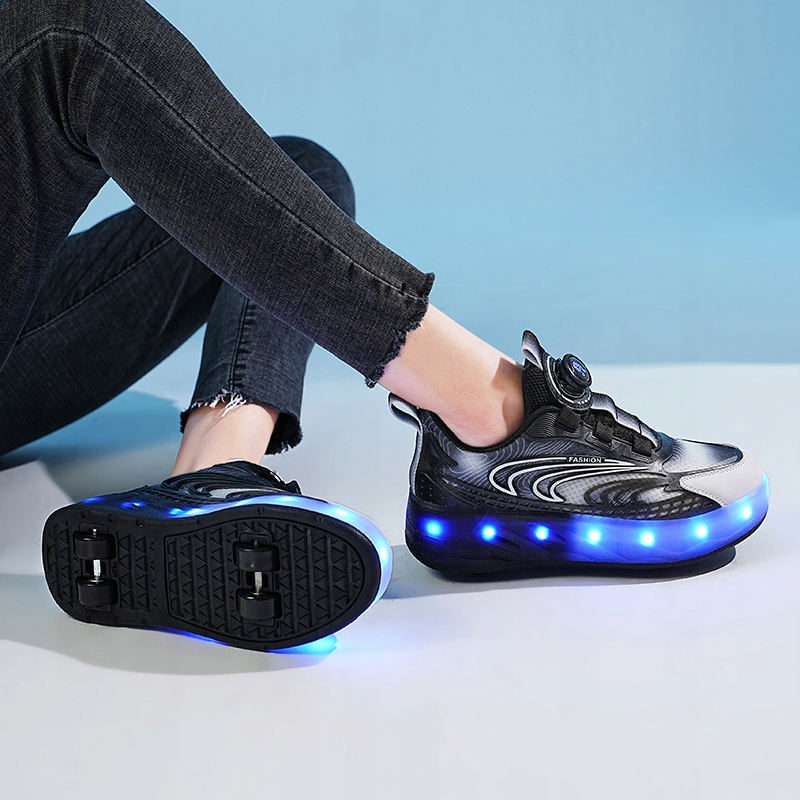 РОЛИКОВІ ВЗУТТЯ РОЛИКОВІ ВЗУТТІ РОЛИКОВІ КОВЗАНІ БЕЗ ШНУРІВКИ ЧОРНІ СВІТЛОДІОДНІ