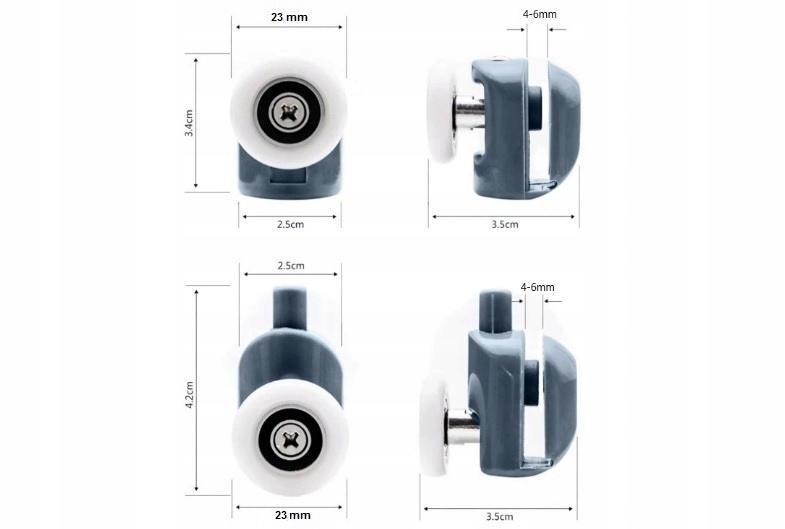Комплект роликов для душевой кабины ZE-06. Точный диаметр колеса в рулоне 23 мм. Подробные размеры на фотографиях.