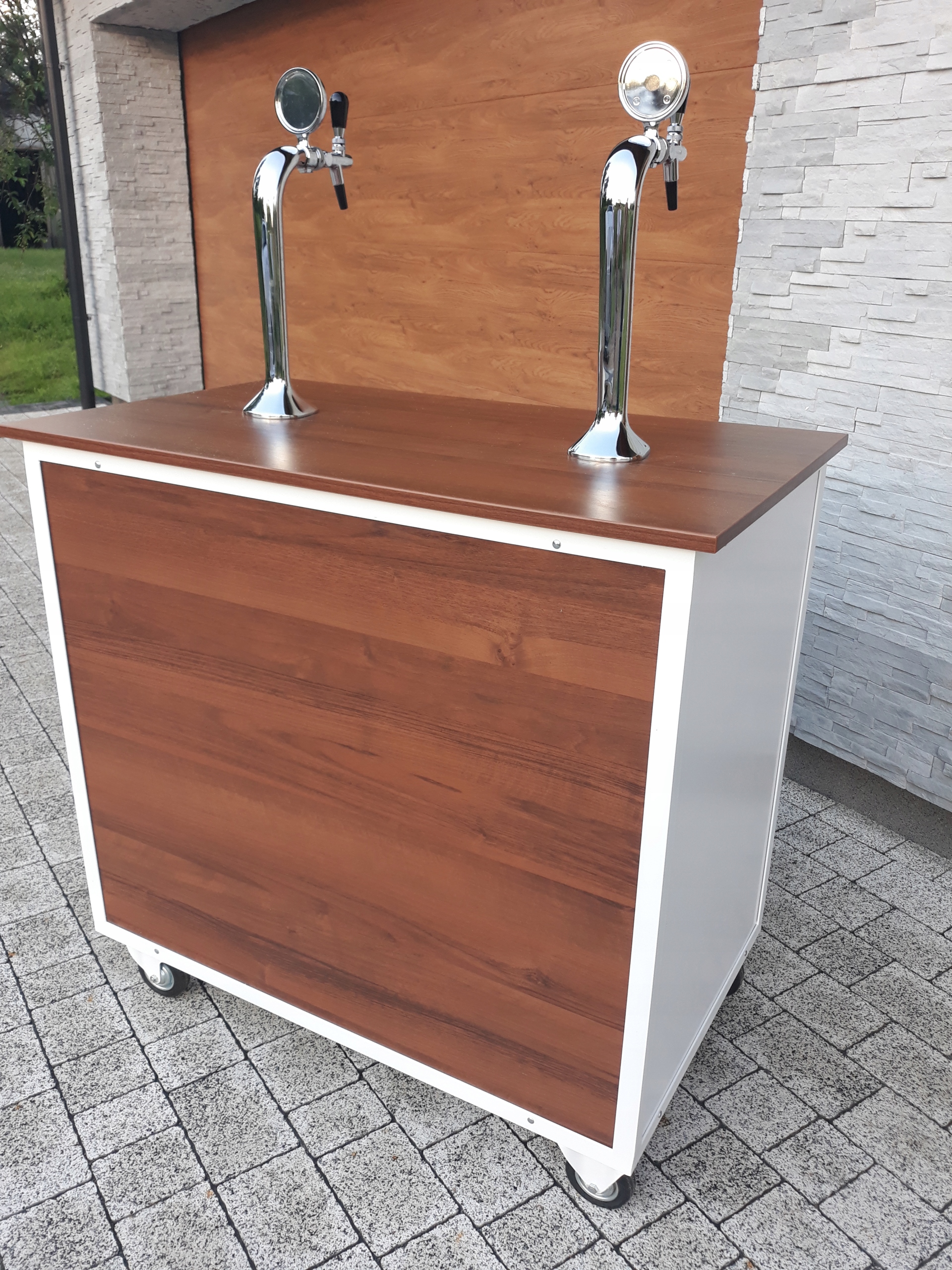 Пивная установка, смонтированная на передвижной тележке, изготовленной из металлического каркаса. (Это очень важный элемент) Ролики без рамы не обладают соответствующей жесткостью и через короткое время использования «разваливаются». Имеет 4 колеса, два поворотных и два фиксированных, в том числе одно с тормозом.