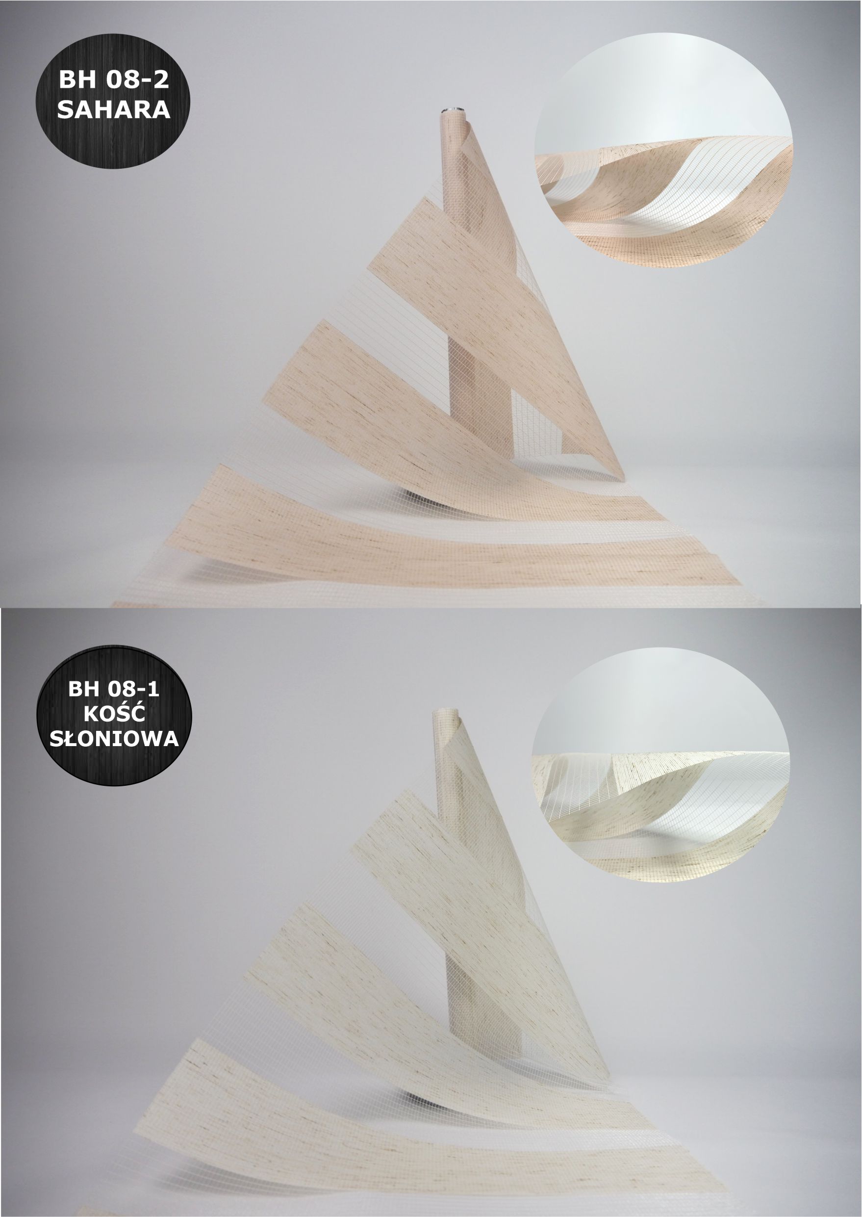 Чрезвычайно эффективный механизм регулировки позволяет установить рольставни на любую желаемую высоту, даже при открытом окне. Ролеты также характеризуются специфическим методом изготовления – благодаря двойному слою ткани, состоящему из чередующихся прозрачных (50 мм) и затемняющих (75 мм) полос, можно очень точно регулировать поток света в помещение.