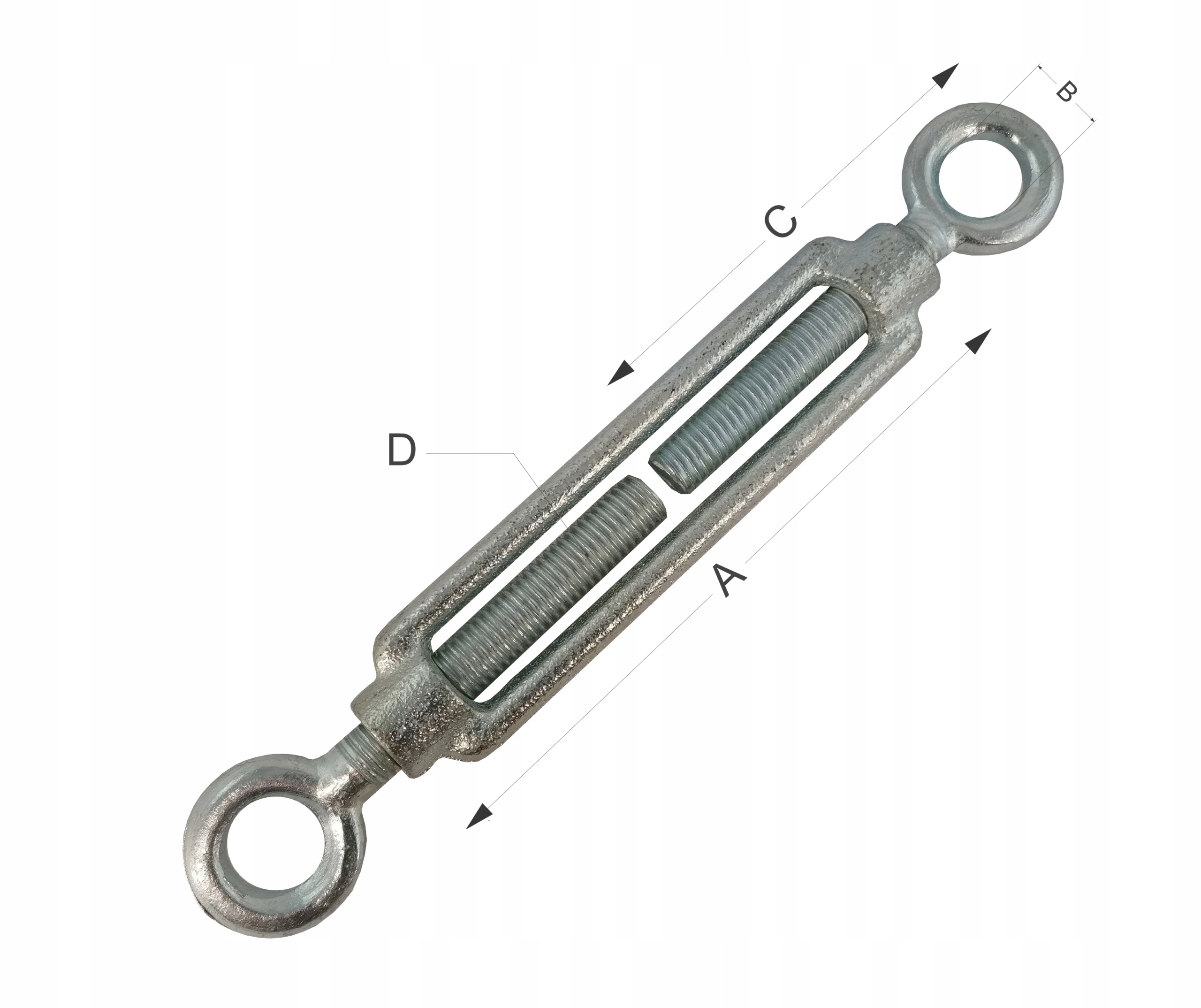 Винт предназначен для натяжения стальных, полипропиленовых канатов и тросов. Веревки протягиваются через крючки, а затем натяжение регулируется путем закручивания противоположных винтов на нужную длину. Веревки можно дополнительно закрепить от скольжения с помощью хомутов и прикрепить к другим деталям конструкции с помощью карабинов или звеньев.