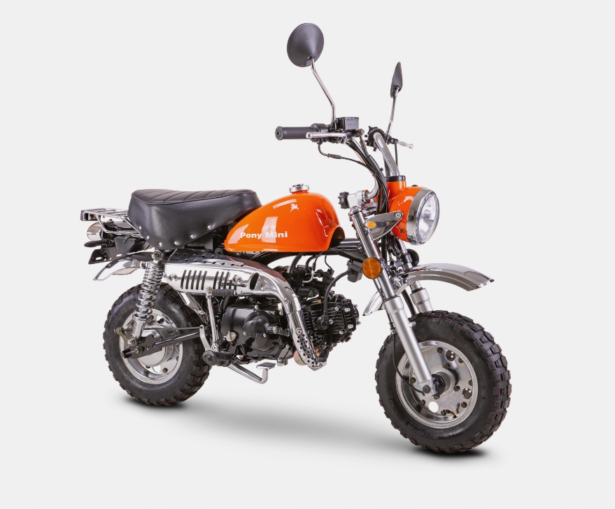 Pony mini 50 управляется простым, одноцилиндровым двигателем. Это четырехлетний удар с воздушным охлаждением с емкостью 49 см и 1,3 л.с. Максимальная скорость ограничена правилами до 45 км/ч, но благодаря этому Pony Mini 50 является мопедом и может быть перемещен без водительских прав.