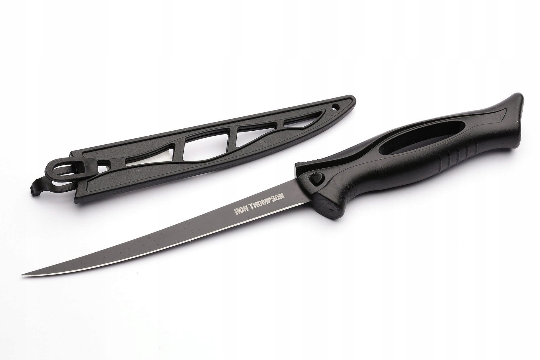 Высококачественный, чрезвычайно острый нож для филетирования рыбы из нержавеющей стали от известной и уважаемой компании Ron Thompson. Благодаря ему вы легко сможете очистить кожу или удалить кости из любой рыбы. Лезвие изготовлено из высококачественной, закаленной, гибкой нержавеющей стали. Специально профилированная рукоятка позволяет ножу удобно и надежно лежать в руке, а противоскользящая резина предотвращает выскальзывание и выпадение ножа из руки. Чехол в комплекте.