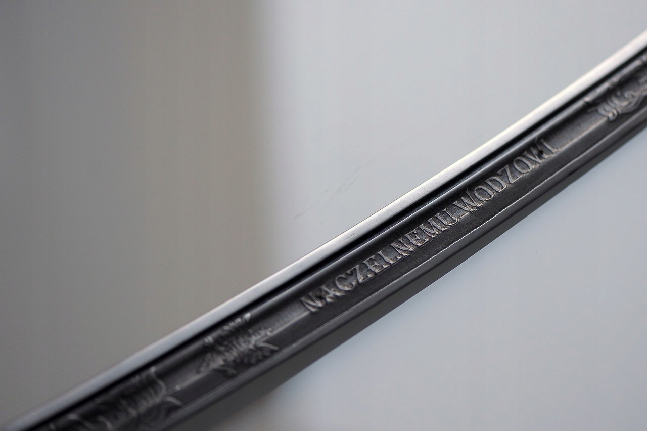 Точная копия одной из последних боевых сабель, корпус которой был разработан так называемым Институт вооружения в 1934 году. Производство располагалось в тогда весьма уважаемой Гуте Людвиков. Он был подарен Эдварду Рыдз-Смиглы по случаю его назначения маршалом Польши в 1936 году. Сабли (осевые) изготовлены из обычной полированной стали. На клинке надпись: «Главнокомандующему». Полировка производится до получения однородной, матовой, гладкой структуры.Не используйте сабли для фехтования – они служат отличным декоративным элементом интерьера, сувениром или подарком. Рекомендуем время от времени консервировать лезвие очень тонким слоем оливкового масла или другого смазочного средства (это поможет сохранить высокое качество продукта). Реплика не заточена и не подлежит заточке. Идеально подходит для гравировки посвящений. Стол прекрасно украсит любую комнату.