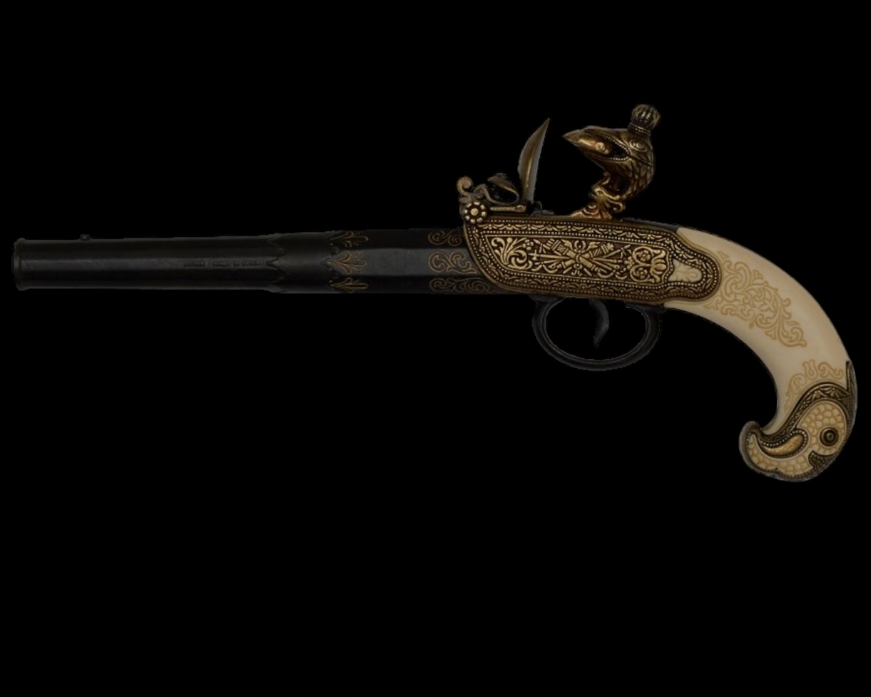 Перед вами российский кремневый пистолет. Скальный замок был обнаружен около 1570 года и стал популярным в начале 17 века. Его появление и последующая популярность означали, что прежние квадратные и колесные замки ушли в прошлое. Русский кремневый пистолет – изящная копия, переносящая нас в очень далекие и интересные времена.