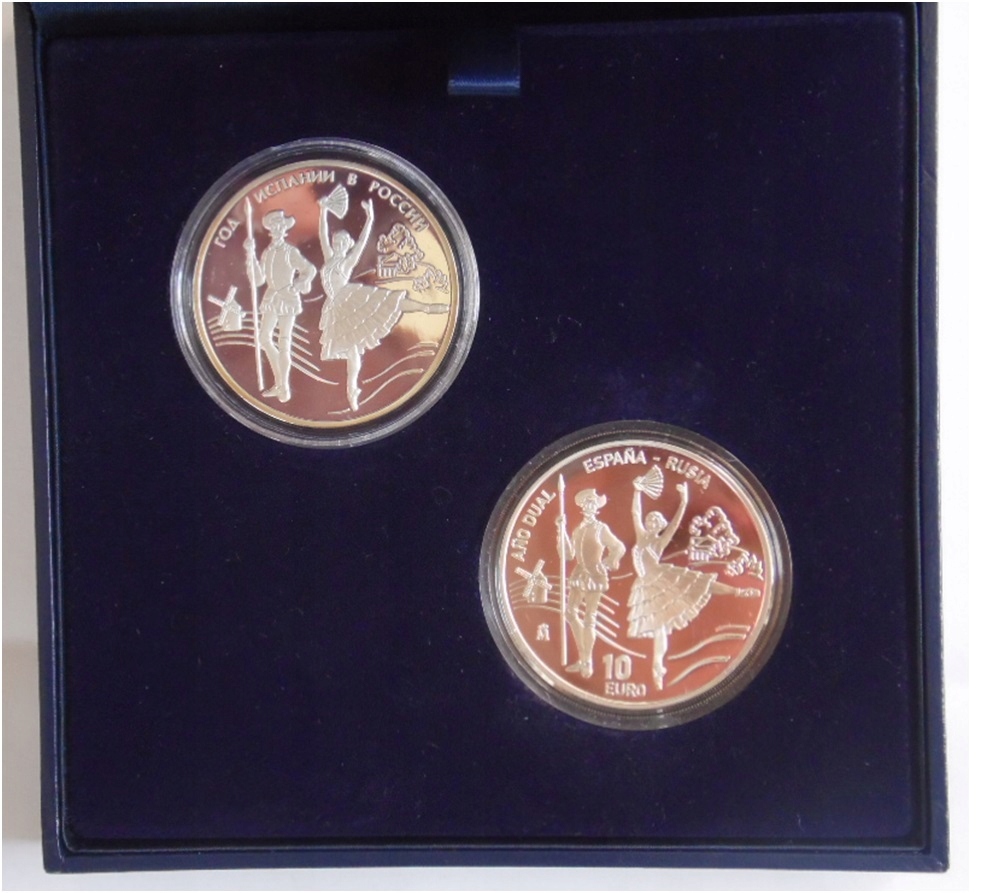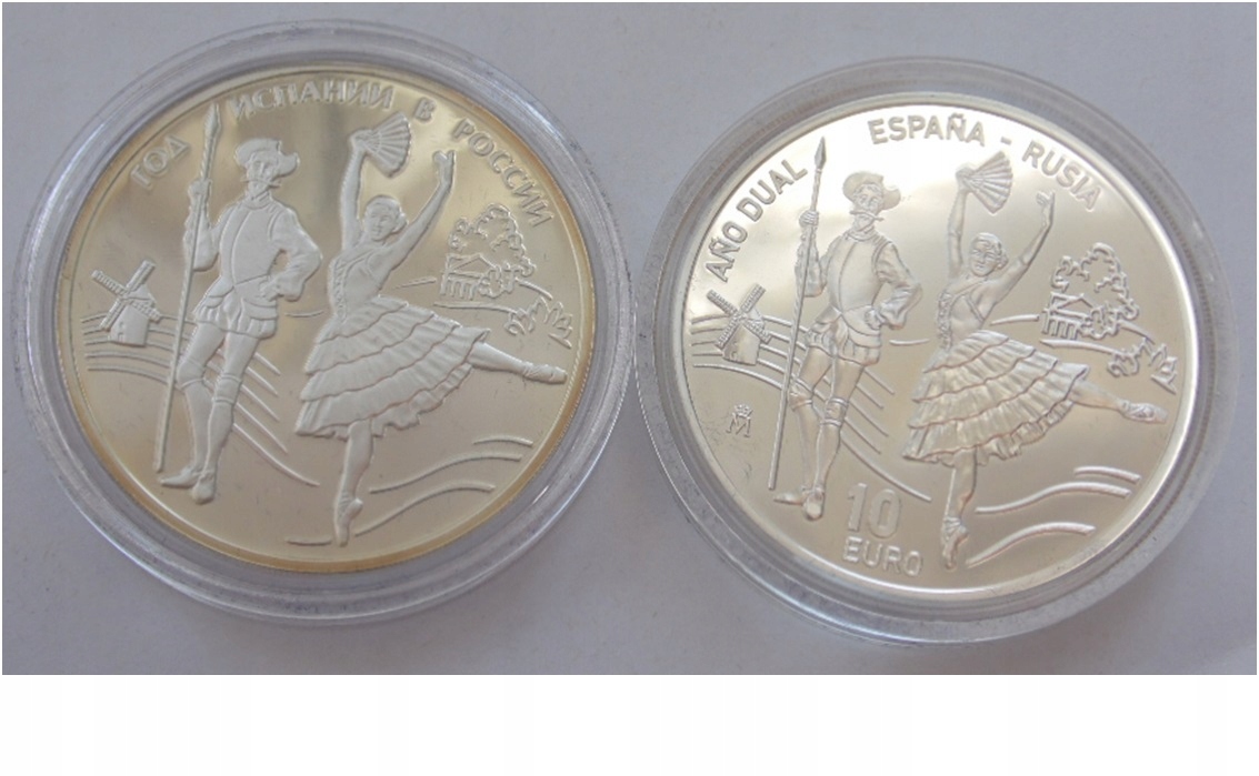 Проведение биеннале Испания-Россия 2011 призвано создать основу для качественного изменения отношений между двумя странами, особенно в экономической сфере. В честь двухлетнего года Испании и России Королевский монетный двор Испании совместно с Банком России принял решение отчеканить две серебряные монеты, аверсы которых были разработаны в тесном сотрудничестве.