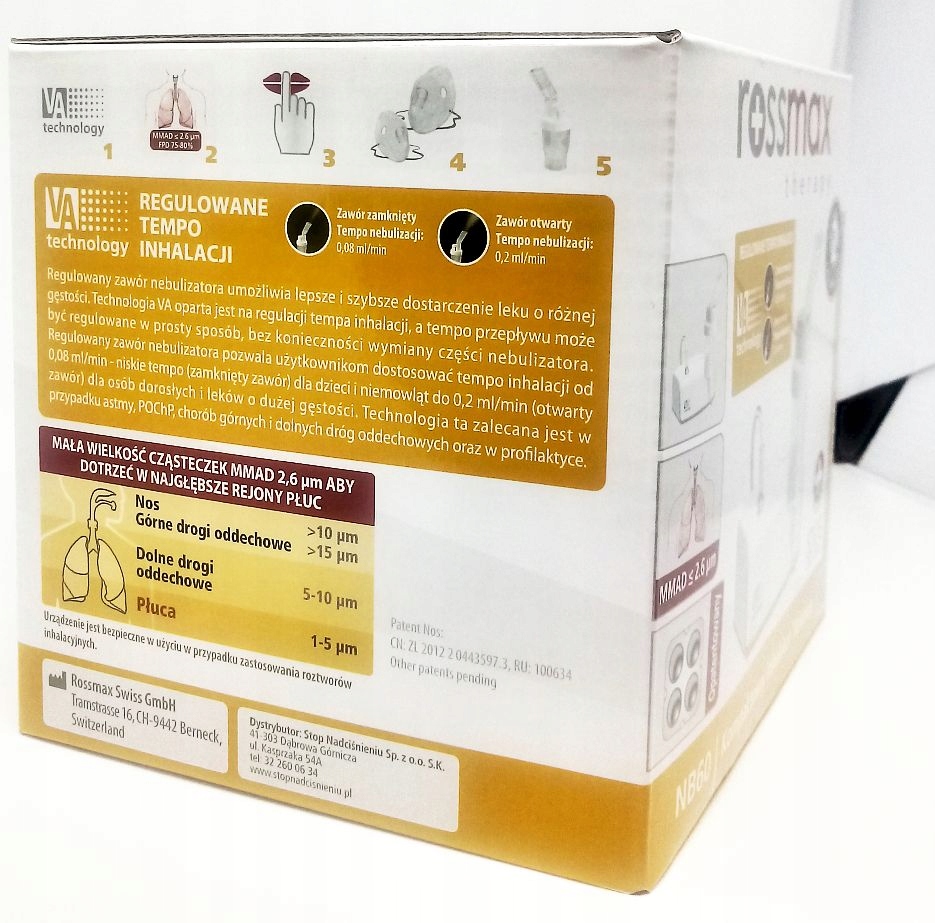 Rossmax NB60 — пневматический поршневой ингалятор, предназначенный для респираторной терапии для всей семьи. Благодаря очень небольшим размерам его идеально брать с собой в путешествие. Он занимает очень мало места.