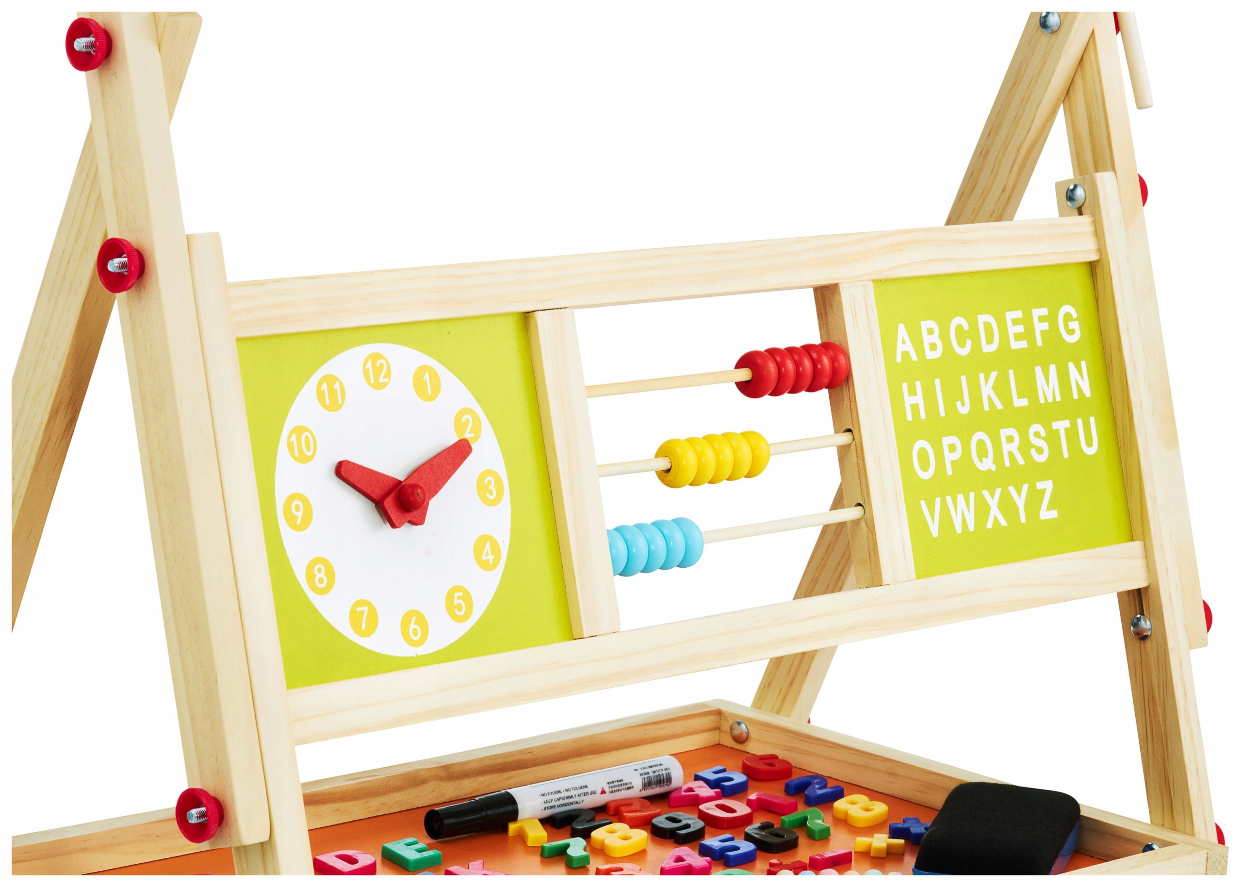 Под доску кладутся счеты, > благодаря которым ребенок сможет освоить основы математики и часы, которые помогут научиться отсчитывать часы. Также имеется практичная полка для аксессуаров.