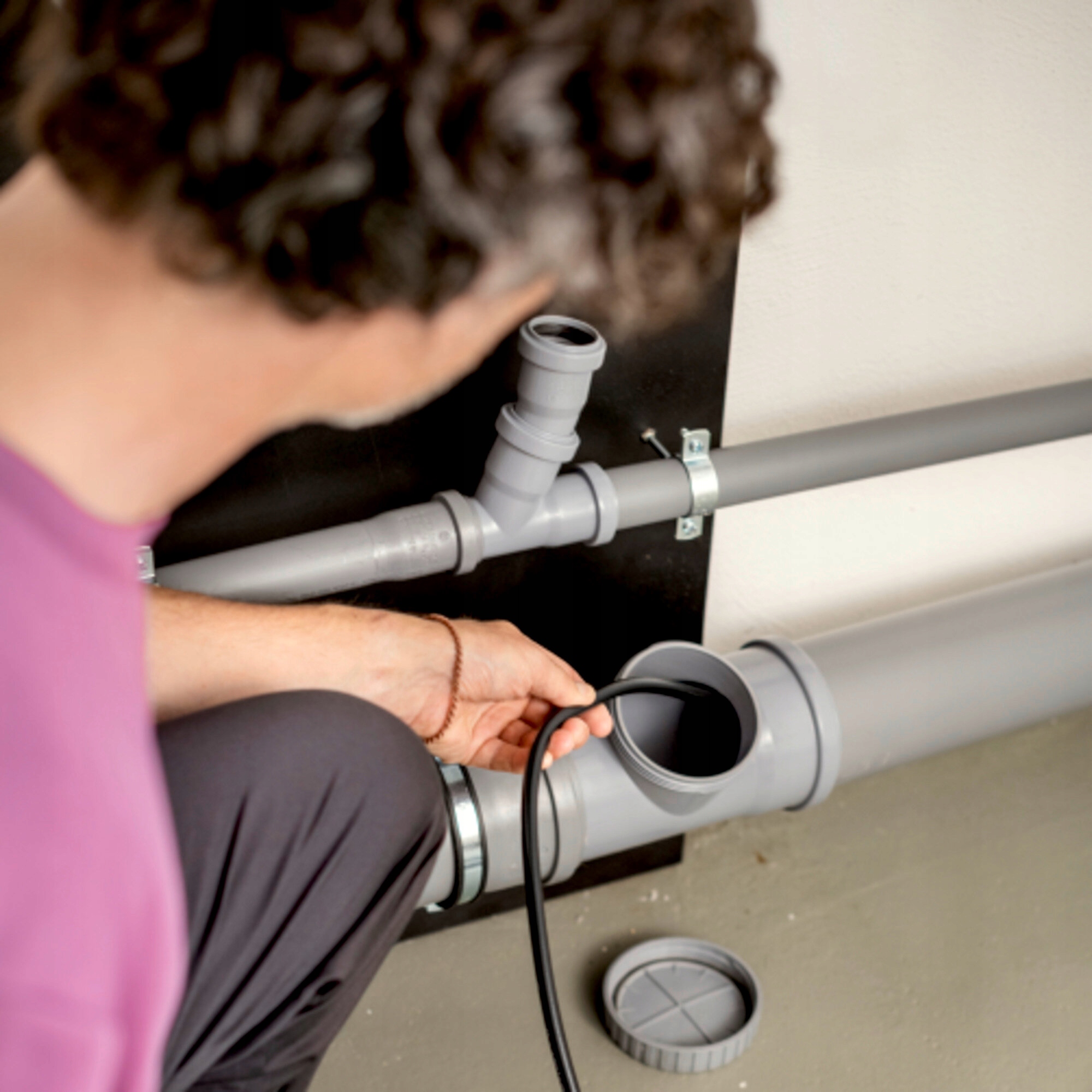 Соединение с шлангом без выпуклости сводит к минимуму риск зажара сопла в трубе. Компактный дизайн обеспечивает максимальную свободу передвижения.