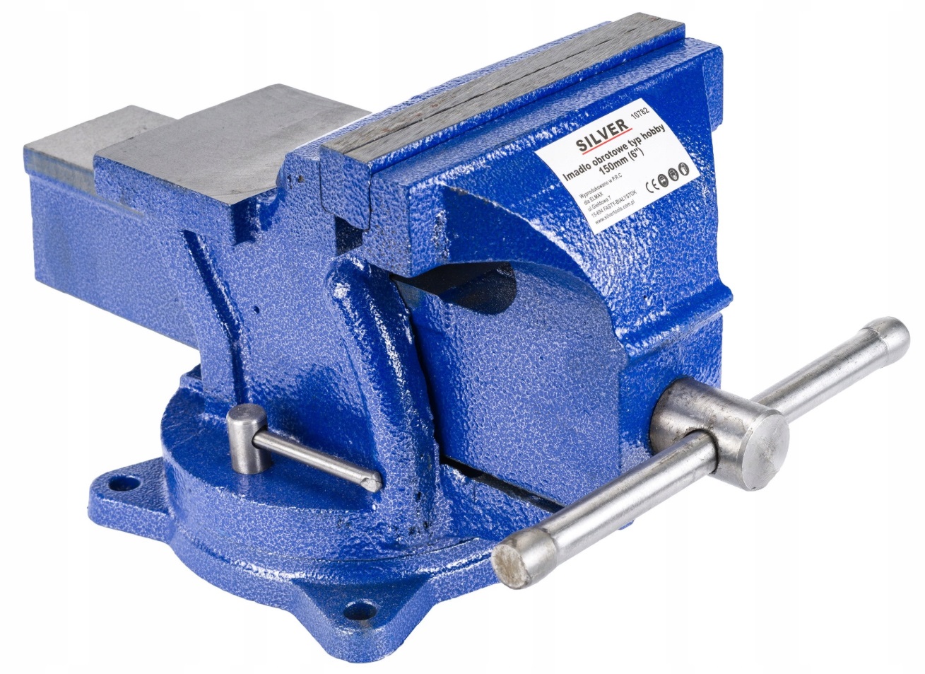 Чугунные слесарные тиски с шириной губок 150 мм из высококачественных материалов, оснащенные наковальней.