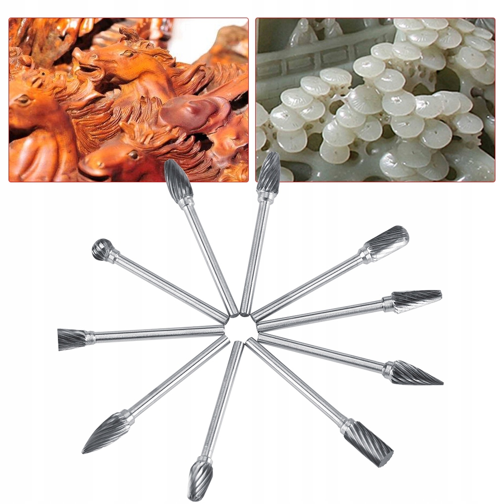 Это набор из10 вращающихся сверл различной формы для различных целей, которые можно использовать для резки чугуна, литой стали, углеродистой стали, легированная сталь, сталь из нержавеющей стали, медь, алюминий, мрамор, нефрит, кость и т. д.