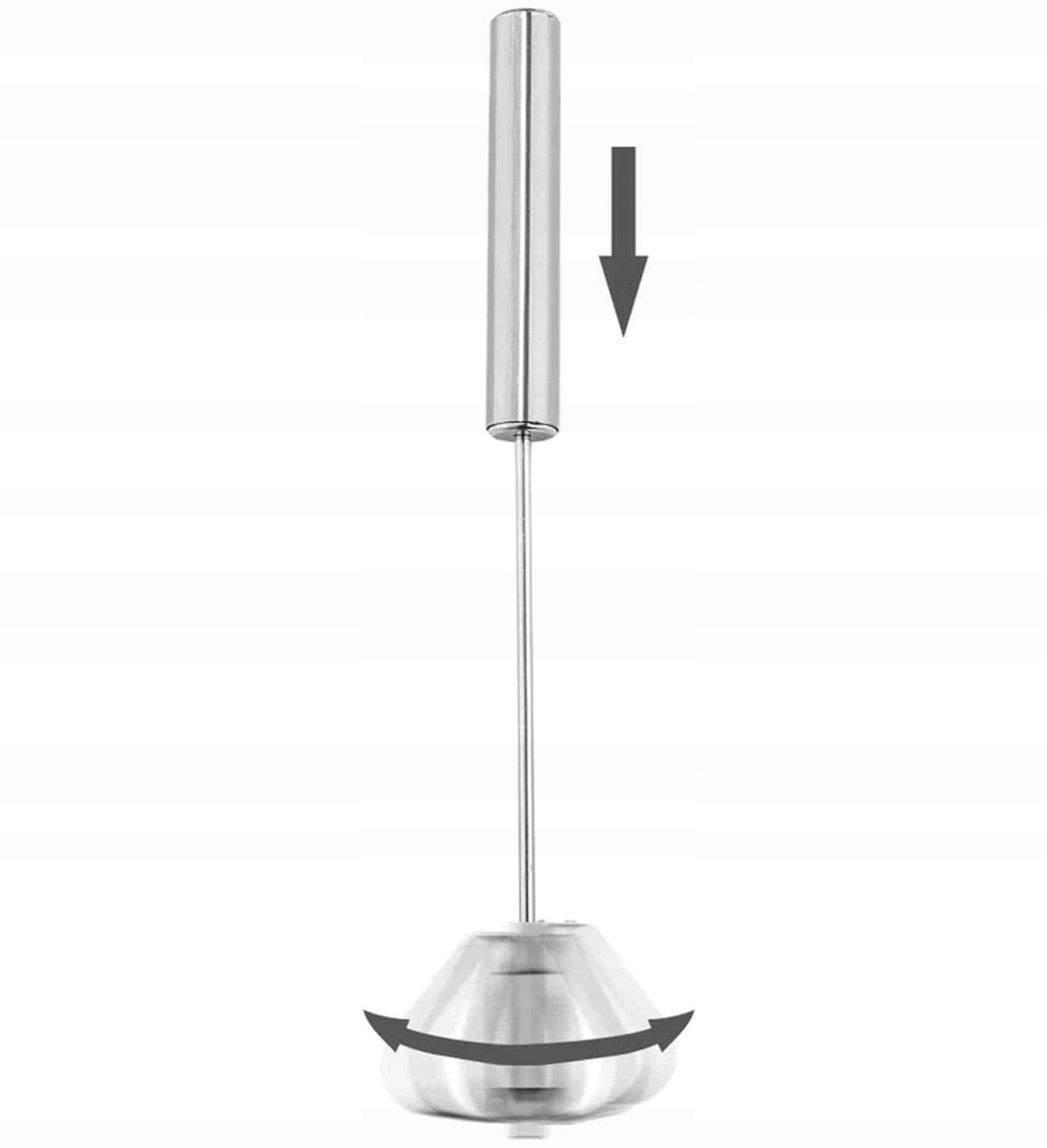 Пружинная ручка и вращающаяся головка позволит быстро взбить яичные белки или сливки в пену, а также смешать ингредиенты для омлета или майонеза.