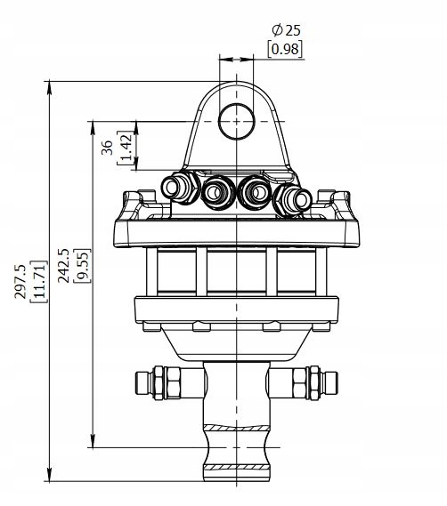 - Нижнее крепление (аксессуары): диаметр штифта - ø 49,5 мм, диаметр отверстия - ø 25 мм