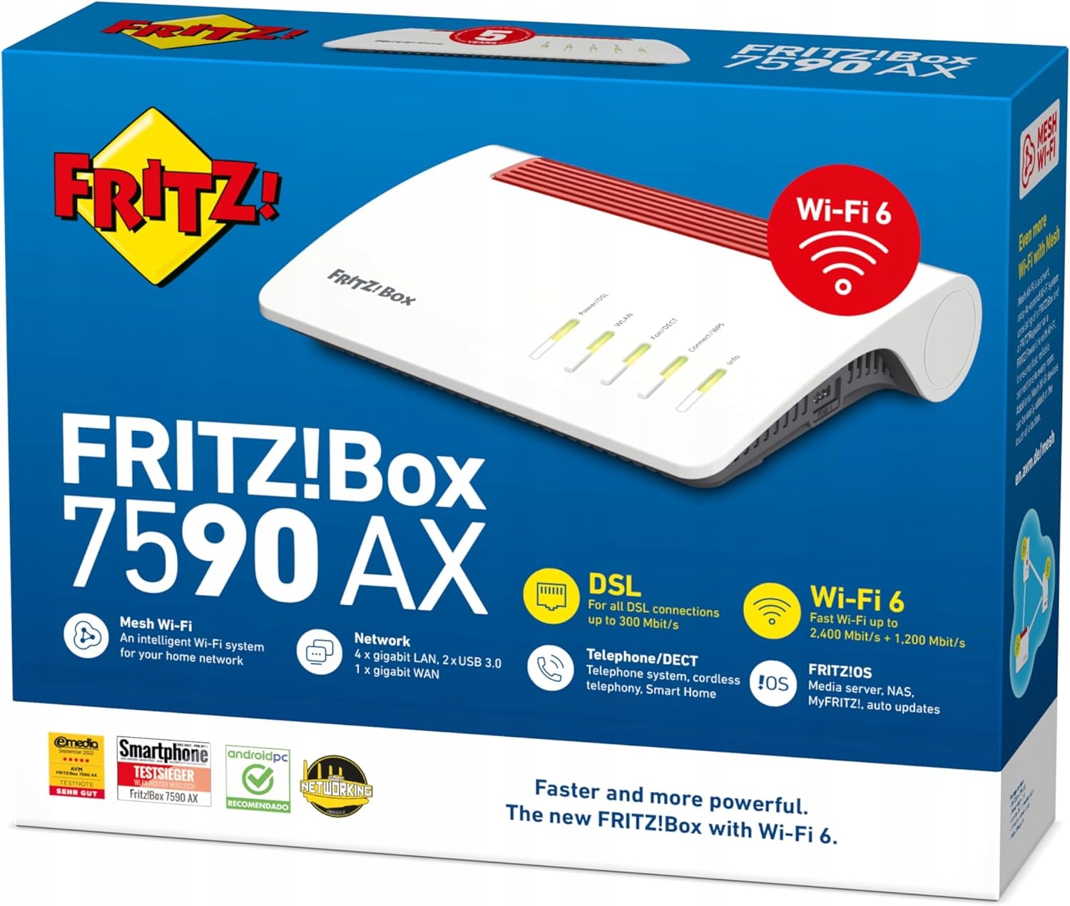 Просматривая «Router AVM FRITZ!Box 7590 AX 802.11ax (Wi-Fi 6)», вы можете быть уверены, что данный товар из каталога «[rubrica_name]» будет доставлен из Польши и проверен на целостность. В цене товара, указанной на сайте, учтена доставка из Польши. Внимание!!! Товары для Евросоюза, согласно законодательству стран Евросоюза, могут отличаться упаковкой или наполнением.