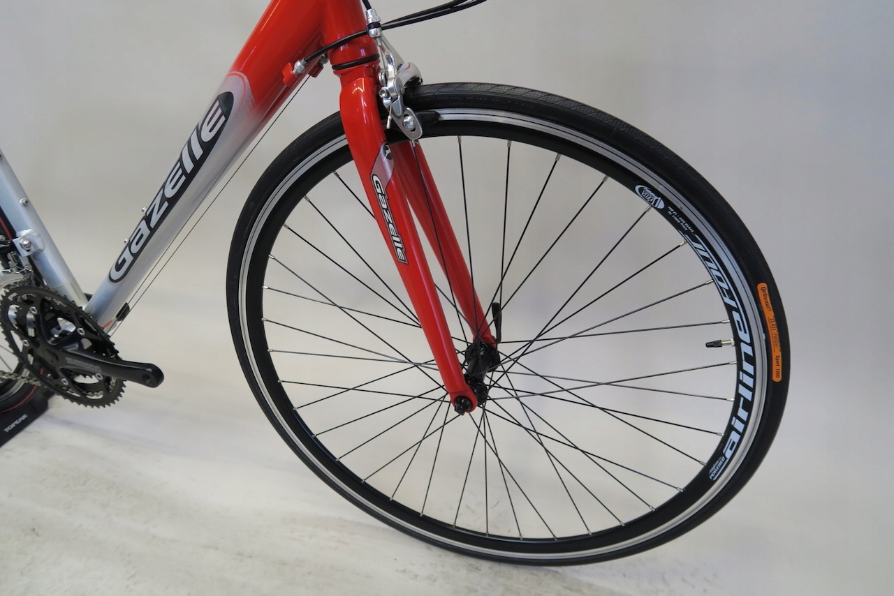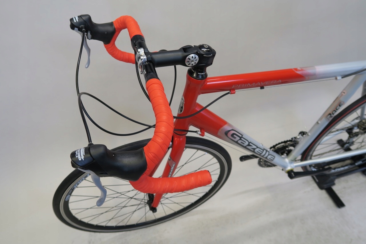 Шоссейный велосипед от ведущего голландского производителя, оснащенный компонентами марки Shimano. Рама и вилка из алюминия. Стандартные колеса диаметром 700 см с прочными дисками с высоким конусом.