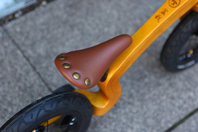 Оба колеса этого велосипеда имеют диаметр. 12 дюймов и оснащены стандартной конструкцией взрослого велосипеда, состоящей из обода со спицами, камеры и шины. Ручки руля широкие и обеспечивают надежный захват благодаря использованию губки, которая не стирается даже во влажном состоянии. кожаное седло обеспечит комфорт во время езды, а возможность регулировки его высоты позволит подогнать велосипед под рост ребенка. Минимальная высота седла от земли — 35 см. Максимальная высота седла: 45 см. Вес 3,75 кг.