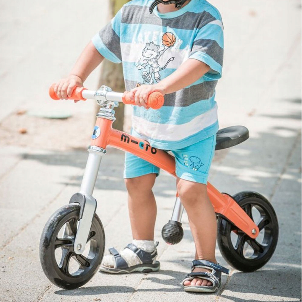 Micro G-Bike — беговел для маленьких детей. Он очень легкий, его можно носить с собой или легко возить в коляске. Это половина веса других велосипедов, доступных на рынке. Колеса диаметром 200 мм обеспечивают большую устойчивость и скорость. Полиуретановые колеса были увеличены, чтобы гарантировать максимальную безопасность и комфорт. Они не оставляют следов и разводов на полу, дети также могут бегать на велосипеде по дому. Даже самые маленькие дети легко научатся на нем кататься, разовьют чувство равновесия и легко перейдут на двухколесный велосипед.