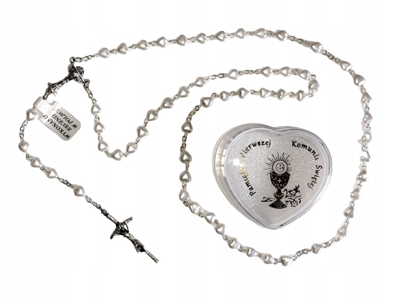 Красивые четки для первого причастия для девочек. Бусы из хрустальных бусин в форме сердечек жемчужного цвета со святым крестом. Иоанн Павел II.