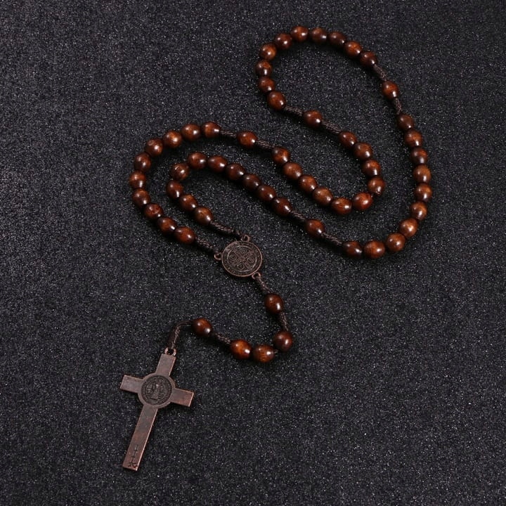 Четки из темного дерева с крестом и медалью Святого. Бенедикт.