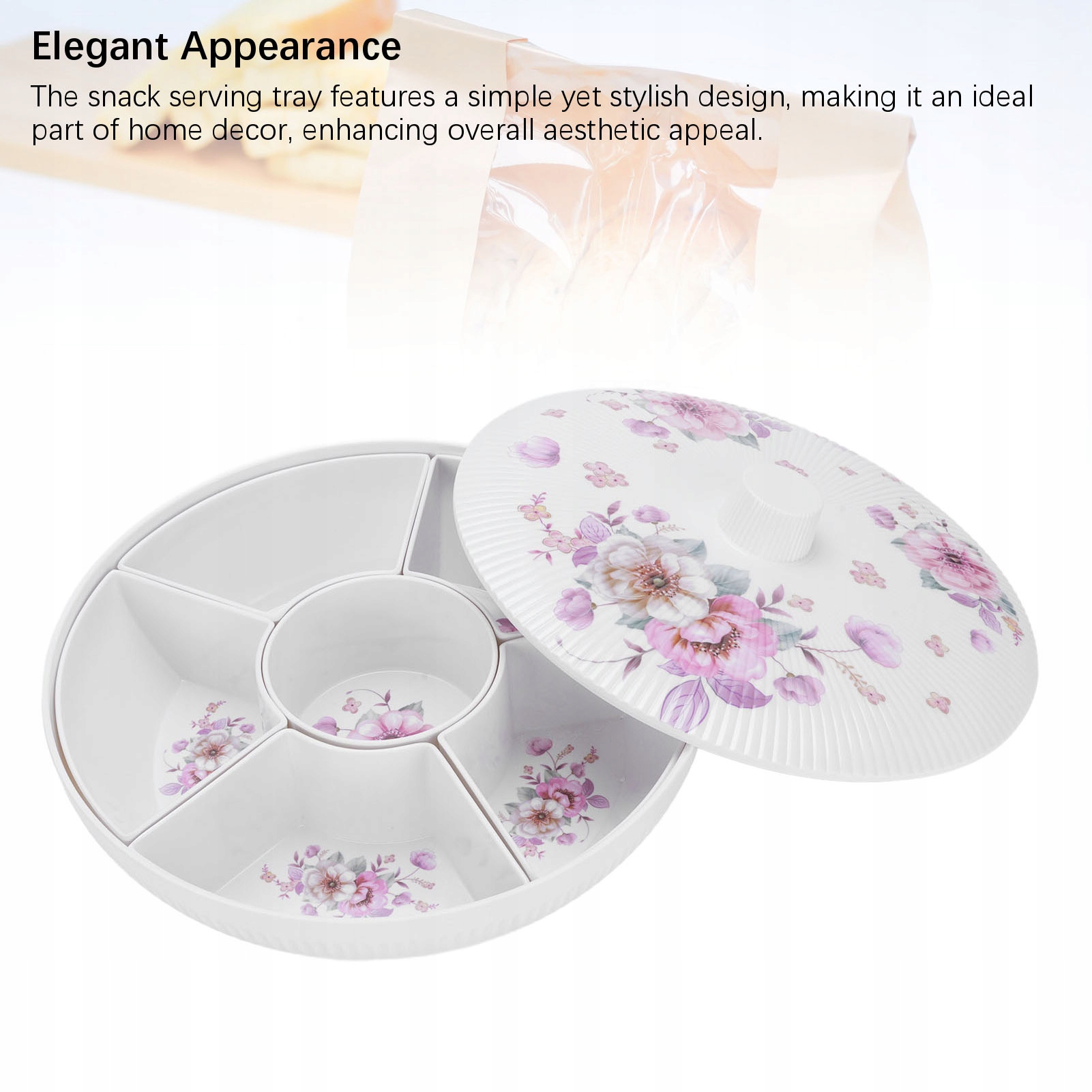 1. Категоризованный дизайн: сервировочный поднос имеет 6 отделений, что позволяет легко хранить различные виды сухофруктов, конфет и закусок отдельно, предотвращая смешивание вкусов и сохраняя первоначальный вкус еды.