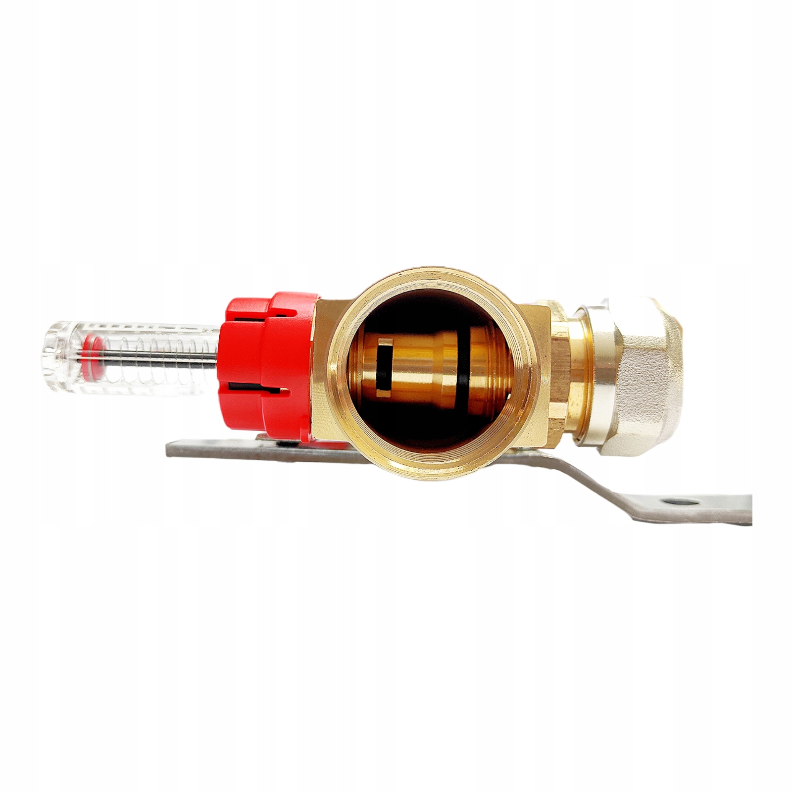 Ротаметр, также называемый регулятором расхода теплого пола, используется на распределительной балке подачи. Ротаметры используются для точного регулирования контуров теплого пола. Вопреки внешнему виду, правильное регулирование потоков и эксплуатация нашего теплого пола – трудоемкая задача. Чтобы наша установка работала эффективно, необходимо правильно регулировать потоки. Сначала откручиваем терморегулирующие клапаны на обратной балке, а затем ротаметр, сняв красный фиксатор, позволяет увеличить или уменьшить расход воды. Процесс регулирования включает уменьшение расхода в более коротких контурах (с меньшим сопротивлением потоку) и увеличение расхода в более длинных контурах (с более высоким сопротивлением). Расходомер имеет диапазон от 0 до 5 л/мин, но опыт показывает, что этот диапазон имеет значительный запас, ведь достигаемые значения в наших установках составляют примерно 1 - 1,5 л/мин.