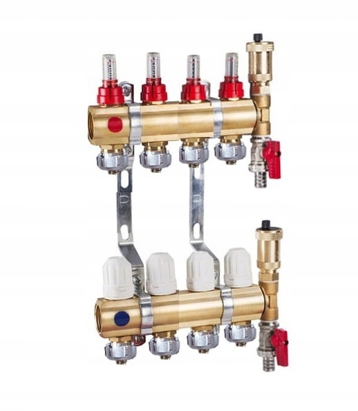 ЛАТУННЫЙ РАСПРЕДЕЛИТЕЛЬ 4 СЕКЦИИ ПОЛЬСКОГО ПРОИЗВОДИТЕЛЯ (СЕРТИФИКАТ) КАЧЕСТВА CW617N ДЛЯ ПИТЬЕВОЙ ВОДЫ + ПЕРЕХОДНИКИ ДЛЯ ТРУБА PEX 16 + ВЕНТИЛЯЦИОННО-ДРЕНАЖНАЯ СЕКЦИЯ.