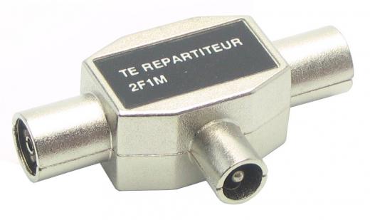Хорошее качество, металлический, экранированный разветвитель коаксиального радиосигнала: 1 штекер (вилка) - 2 гнезда (розетка).