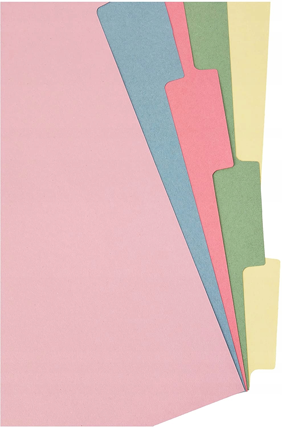 - Разделители формата А4 из 5 частей из картона плотностью 155 г/м2 различных цветов.